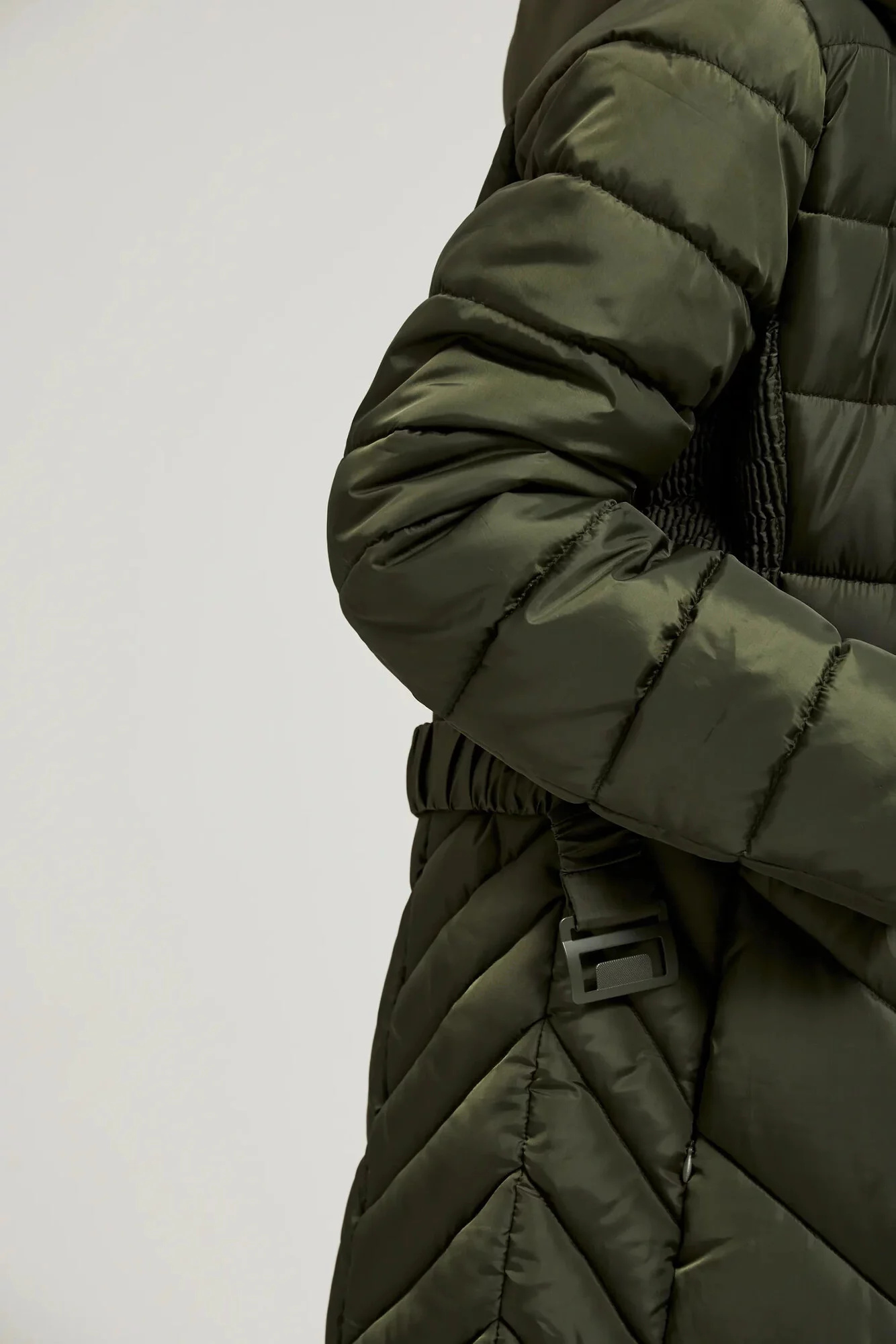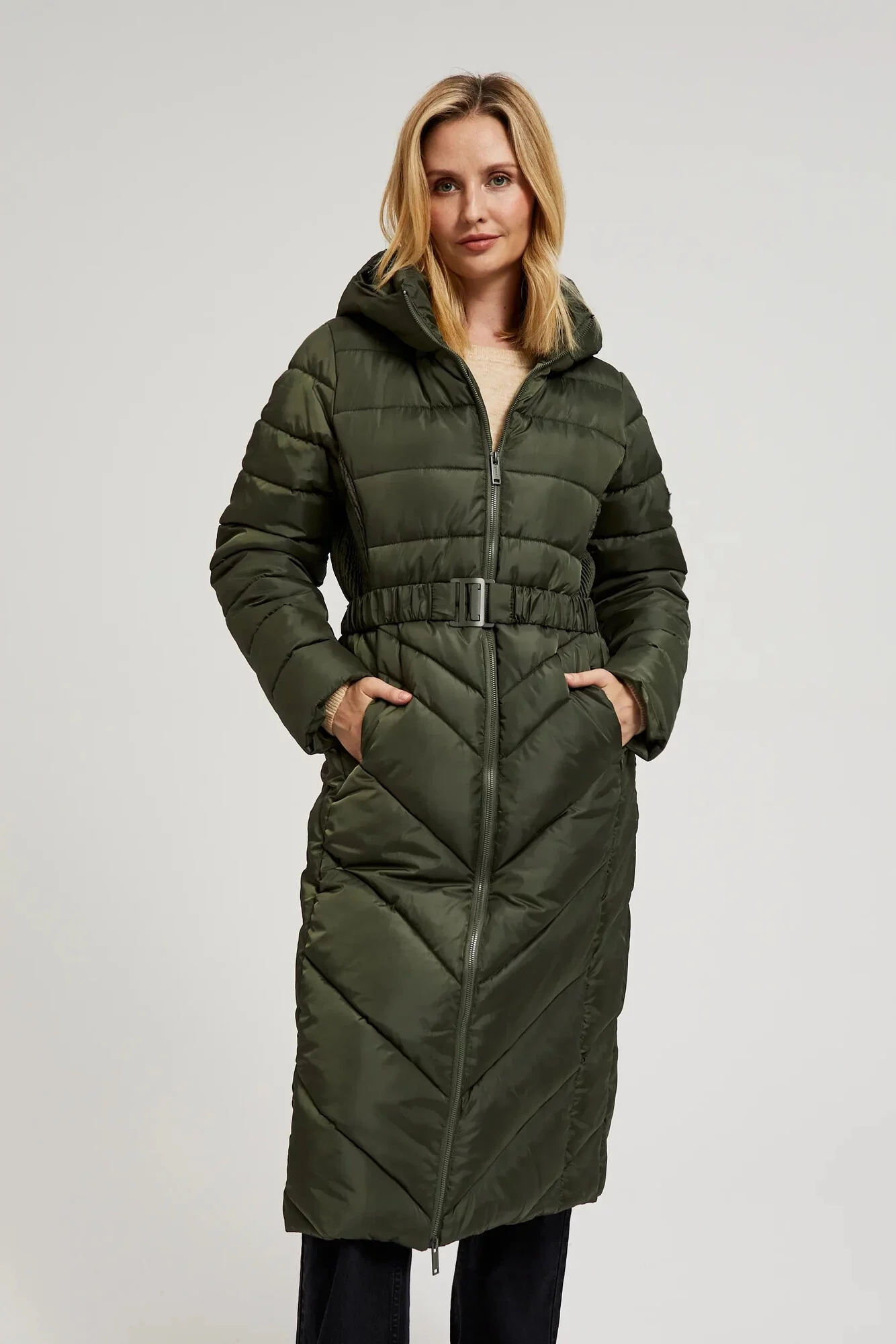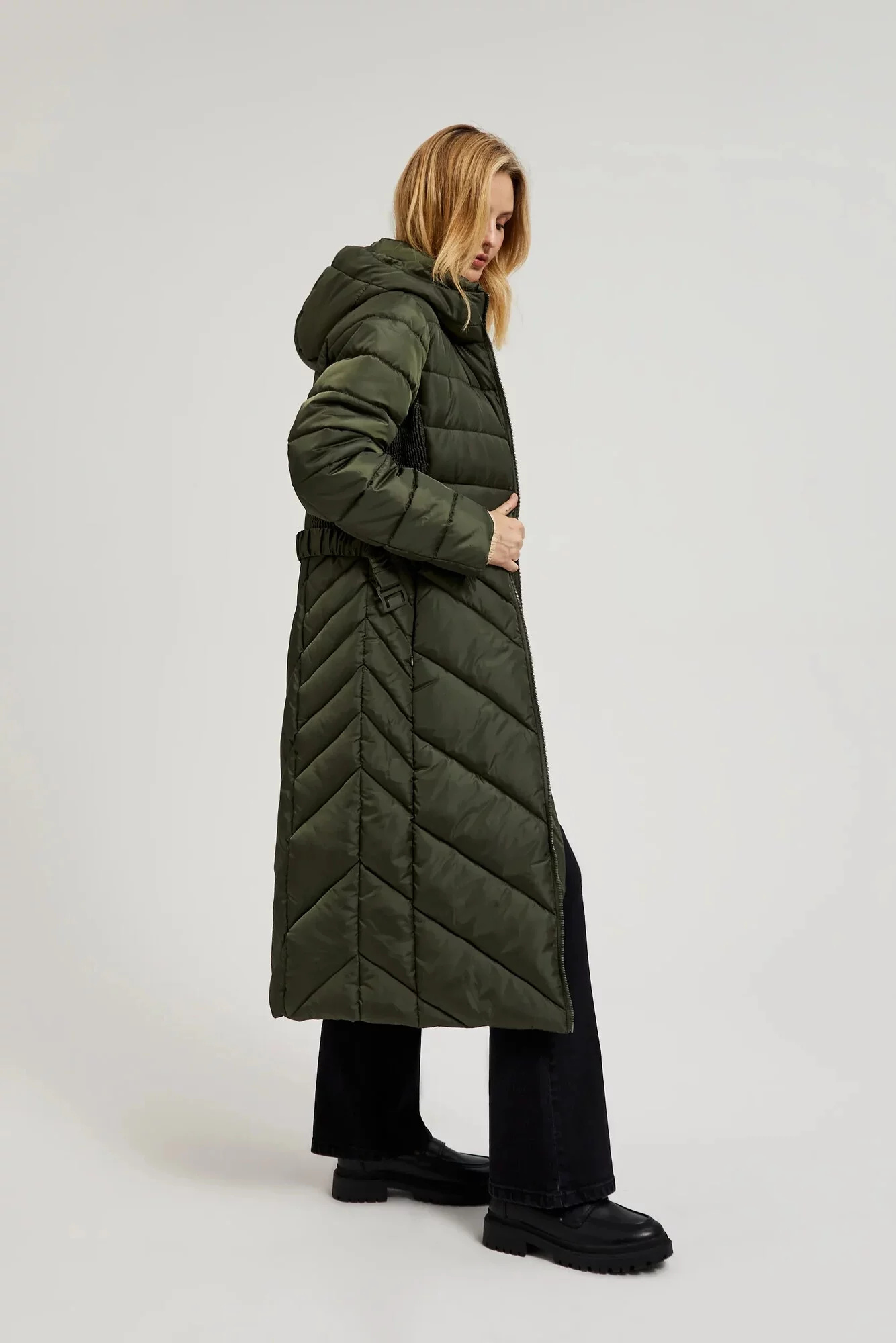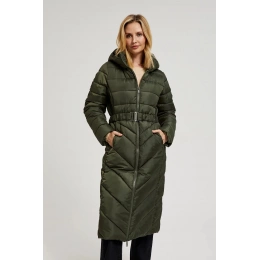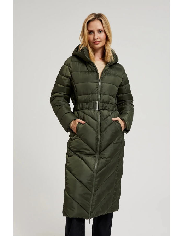 100% POLYESTER Dámská bunda v olivové barvě je ideální volbou pro chladnější dny. Vyrobena z hladkého polyesteru, zajišťujícího pohodlí při nošení. Má praktické kapsy, nastavitelný pásek, zateplení a efektní prošívání. Dodatečně je vybavena podšívkou, stojáčkem, dlouhým rukávem se zipem a kapucí. Bunda sahá pod kolena, což zajišťuje vynikající ochranu před chladem. To je skvělá nabídka na zimní procházky nebo každodenní vycházky. Ideálně se hodí k džínům a teniskám, ale stejně dobře bude ladit se sukní a kotníkovými botami. Díky univerzálnímu designu bude bunda skvělým doplňkem šatníku pro každou příležitost.