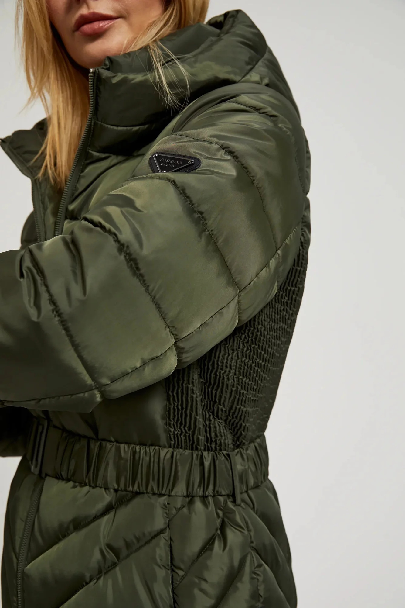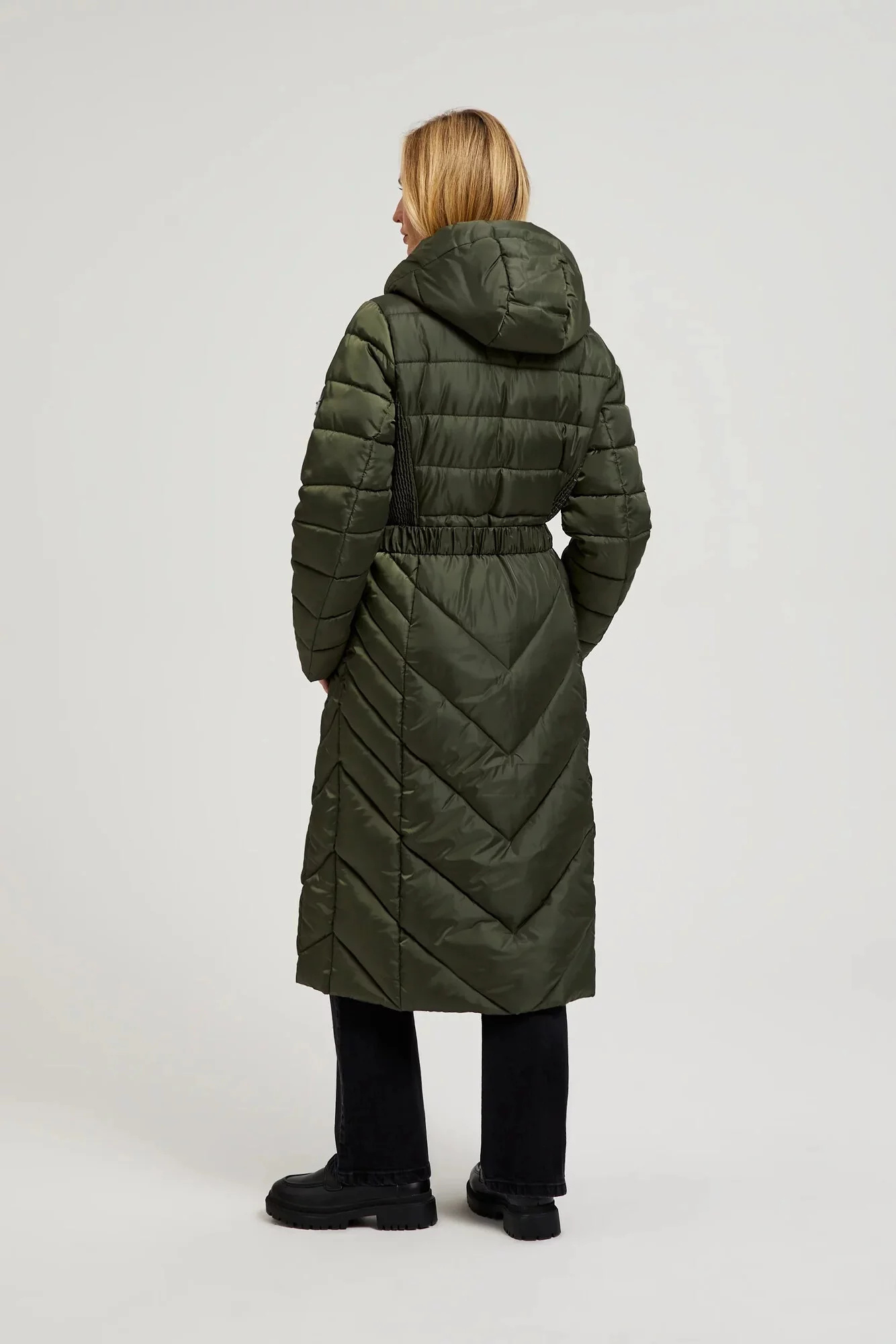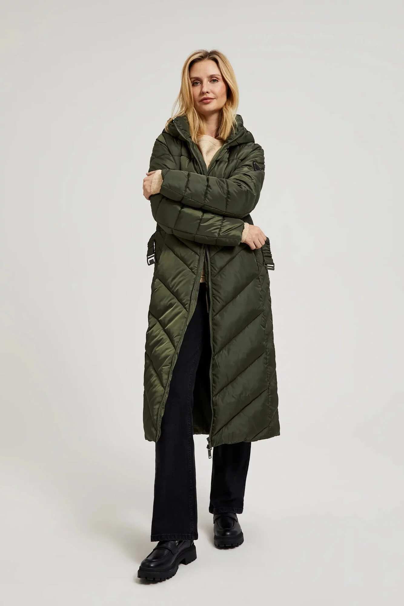 100% POLYESTER Dámská bunda v olivové barvě je ideální volbou pro chladnější dny. Vyrobena z hladkého polyesteru, zajišťujícího pohodlí při nošení. Má praktické kapsy, nastavitelný pásek, zateplení a efektní prošívání. Dodatečně je vybavena podšívkou, stojáčkem, dlouhým rukávem se zipem a kapucí. Bunda sahá pod kolena, což zajišťuje vynikající ochranu před chladem. To je skvělá nabídka na zimní procházky nebo každodenní vycházky. Ideálně se hodí k džínům a teniskám, ale stejně dobře bude ladit se sukní a kotníkovými botami. Díky univerzálnímu designu bude bunda skvělým doplňkem šatníku pro každou příležitost.