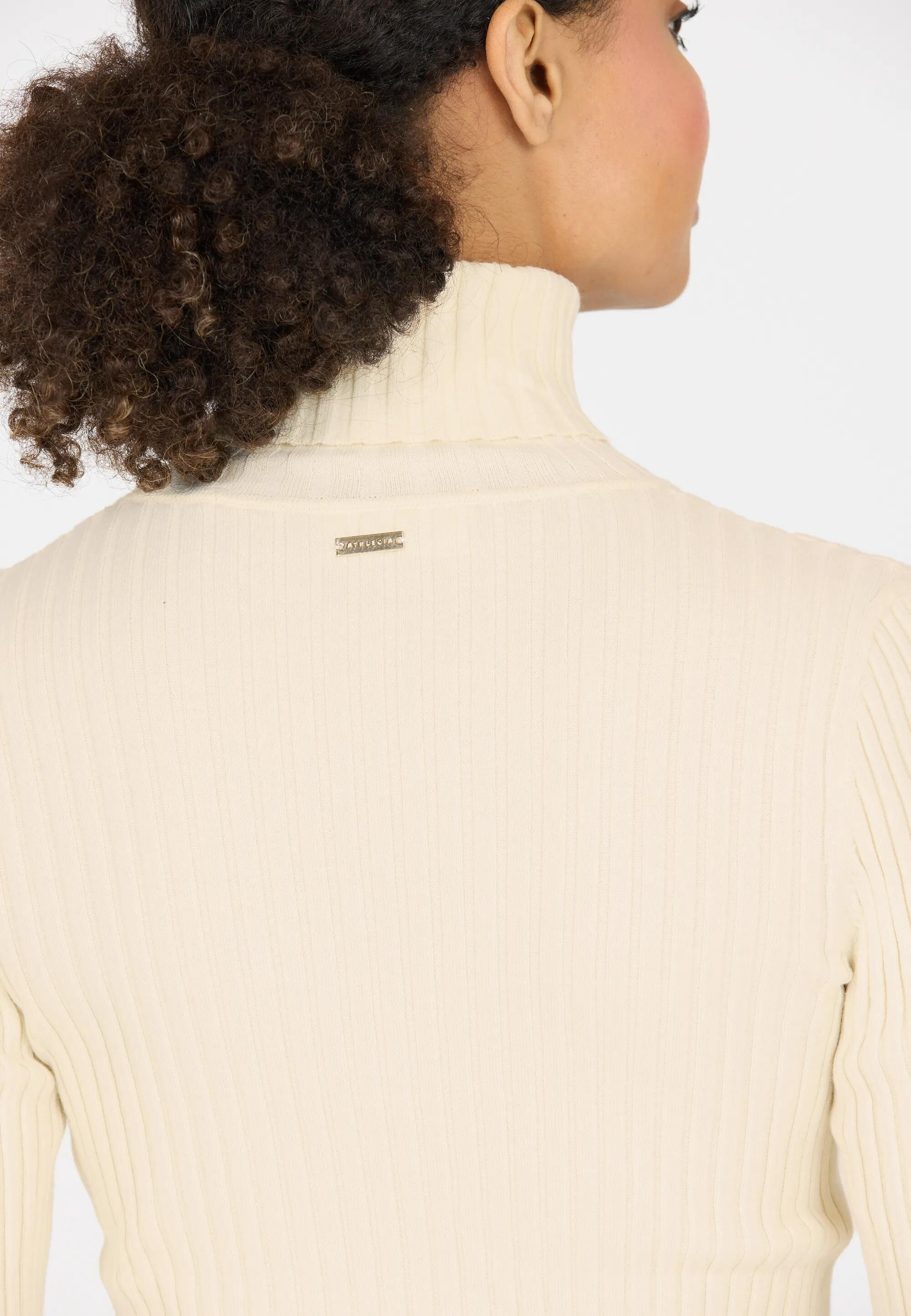 Vysoký rolák chrání před chladem a zároveň působí elegantně.