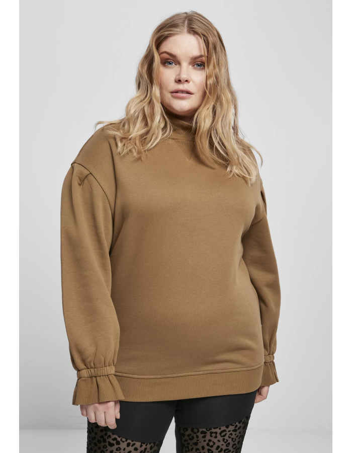 Dámský svetr pro každodenní akce! Široký střih a měkká fleecová tkanina zaručují nejlepší pohodlí při nošení. Kromě toho nabízí jemné designové detaily, jako je ozdobný trojúhelník na přední straně, který je umístěn přímo pod pohodlným stojatým žebrovaným límcem. Dalším vizuálním zvýrazněním mikiny jsou rafinované manžety, které jsou vybaveny elastickými pásky a otevřeným žebrovým lemem. Lehký vzhled trendy dámského svetru dotváří ozdobné řasení na šikmých ramenou.