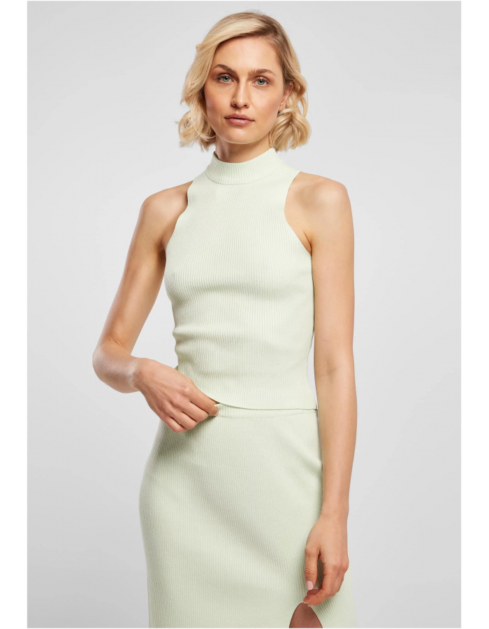 Tento elegantní dámský úpletový top se prezentuje jako decentní klasika v nadčasovém tvaru. Je bez rukávů, má jemný rolák a má krátkou délku těsně pod boky. Slim fit střih také vytváří skvělou siluetu. Top je vyroben z jemné žebrované tkaniny (polyakryl, viskóza a nylon) a je bez manžety.