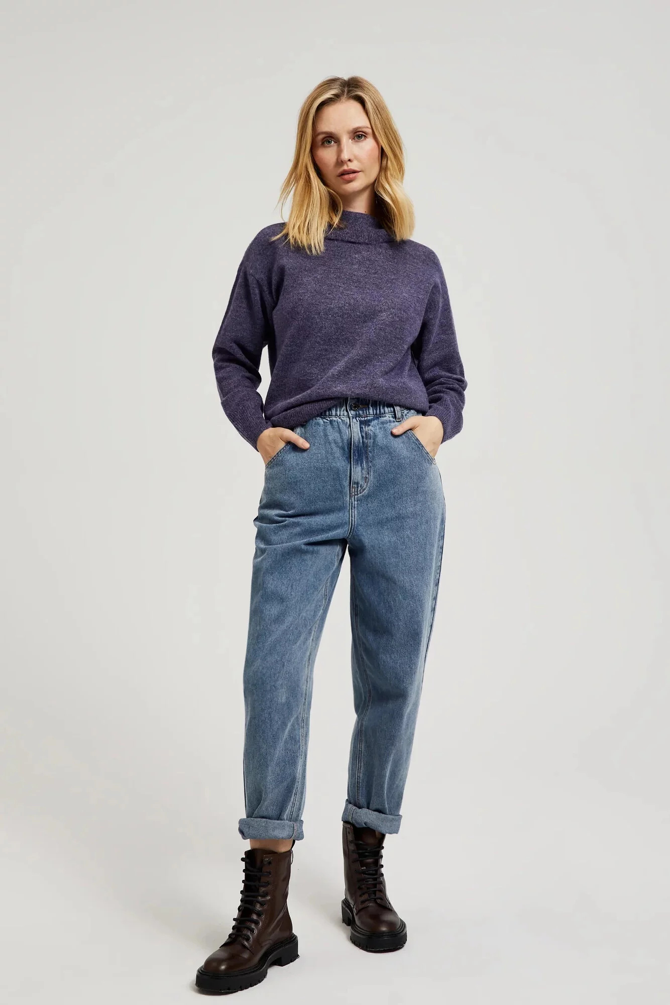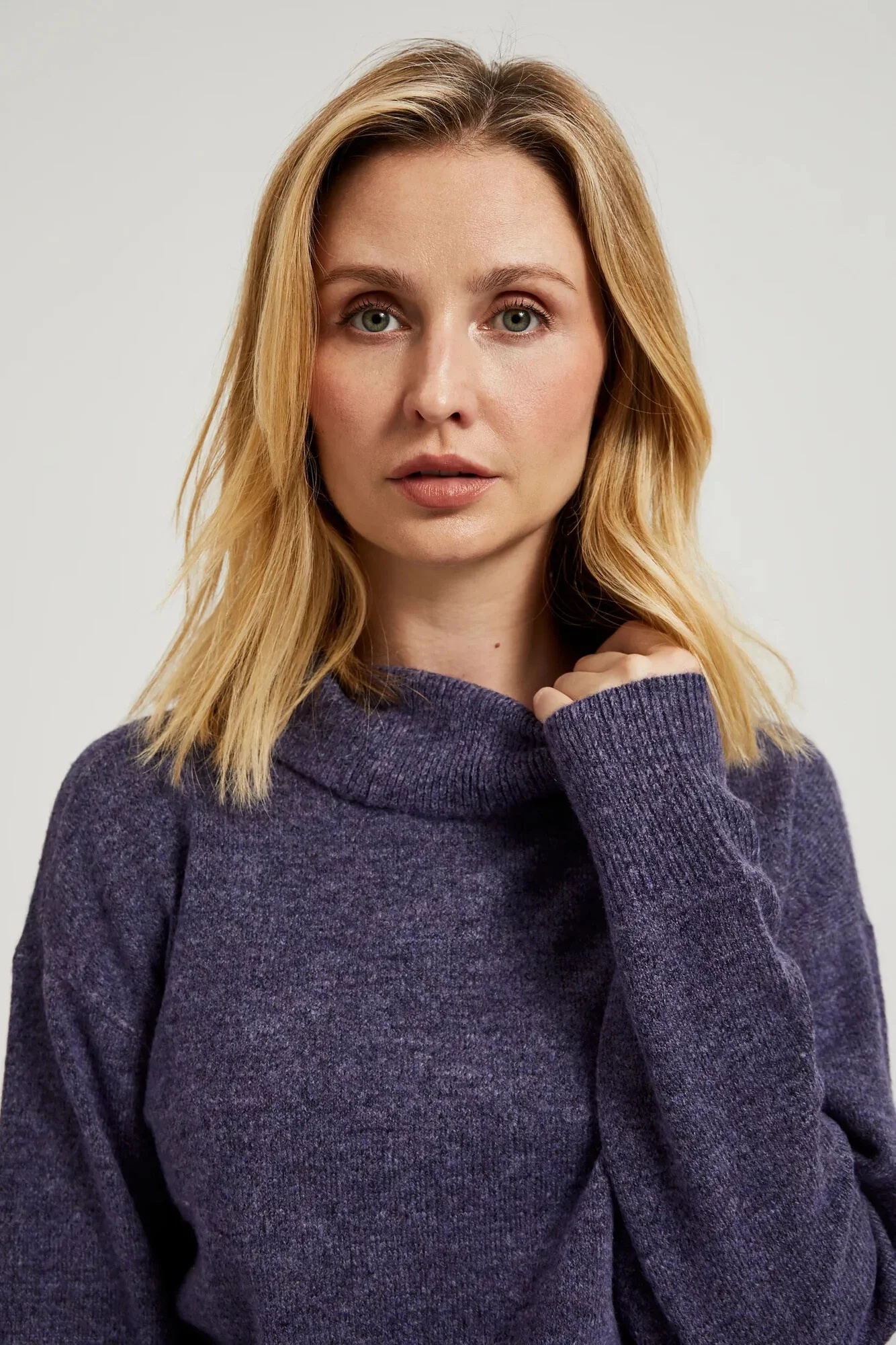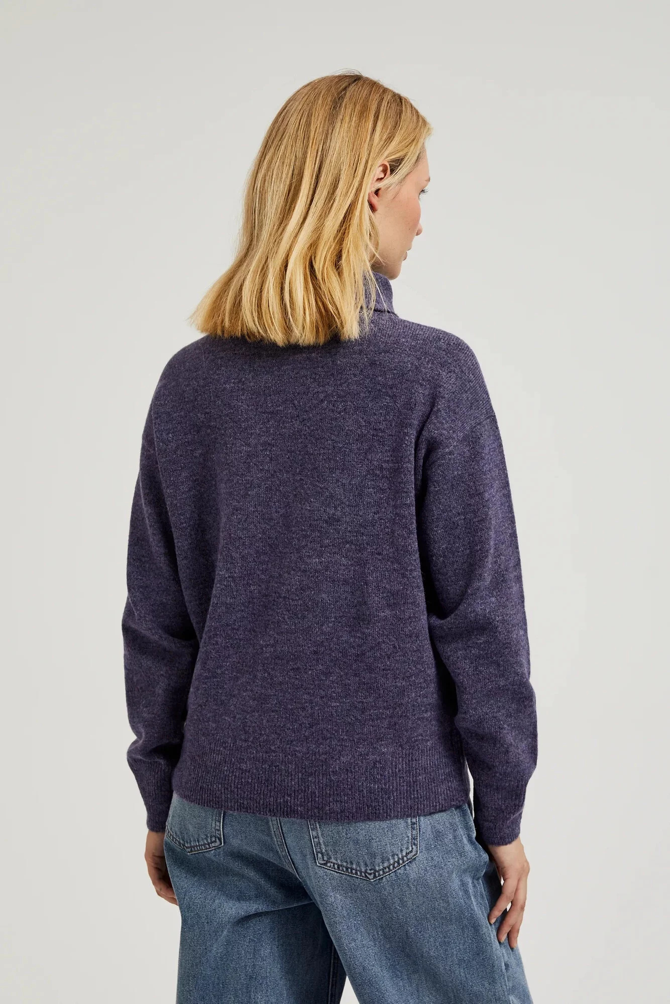52%POLYESTER, 41%AKRYL, 7%ELASTAN Fialový svetr v klasickém stylu s dlouhým rukávem a rolákem je skvělou volbou pro chladnější dny. Vyrobený z vysoce kvalitního materiálu v melírovaném odstínu, poskytuje teplo a pohodlí po celý den. Ideální pro různé příležitosti, od každodenních procházek po formálnější setkání. Hodí se skvěle k džínům, sukni nebo elegantním kalhotám, dodávajíc stylizaci výjimečný charakter.