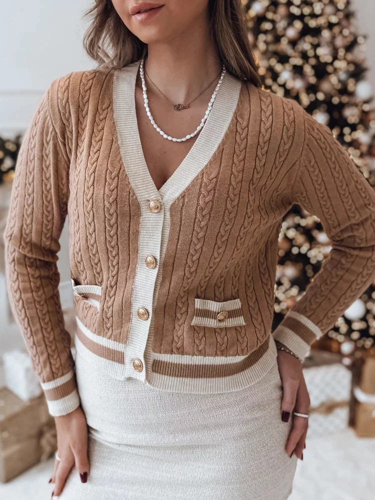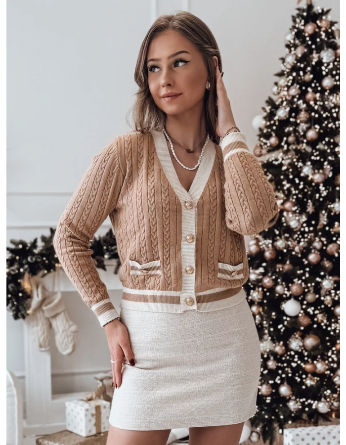 Svetr s knoflíky je klasika, která nikdy nevyjde z módy. Díky kontrastním úpravám a detailům v podobě ozdobných knoflíků získává tento model moderní nádech. Měkký materiál zajišťuje pohodlí při nošení a přiléhavý střih zdůrazňuje postavu. Ideální do kanceláře, na setkání nebo večerní výlety – v každé situaci dodá třídu a styl.