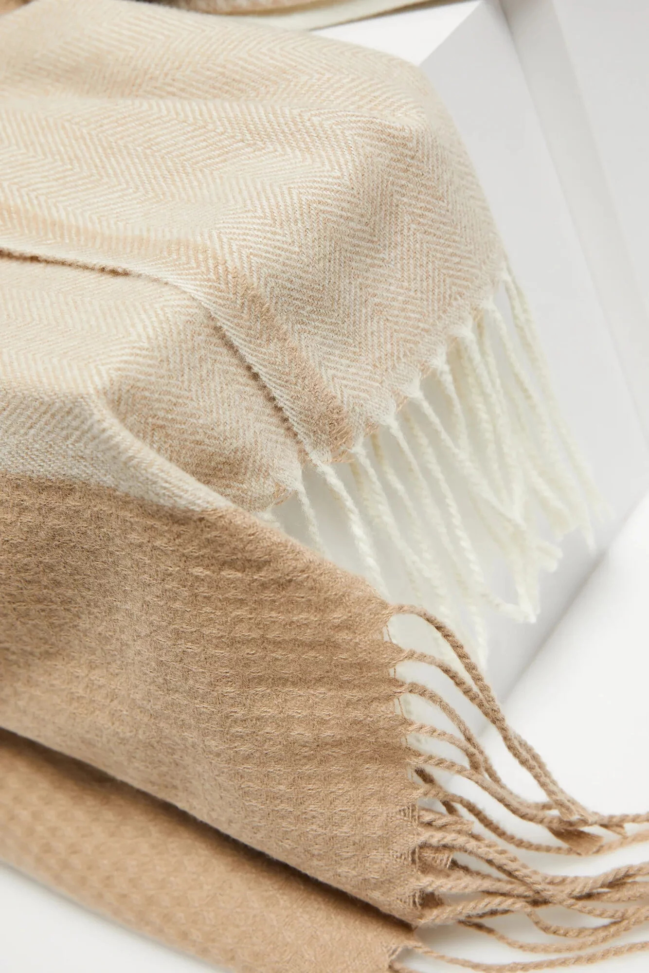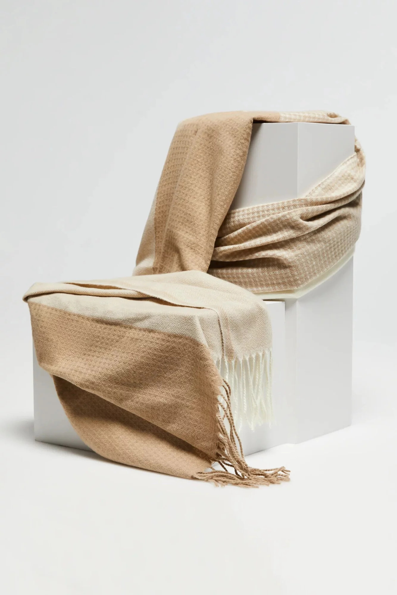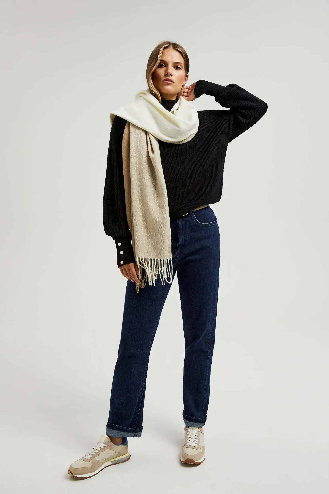 100%POLYESTER Béžová šála s třásněmi je ideálním doplňkem k tvému outfitu.