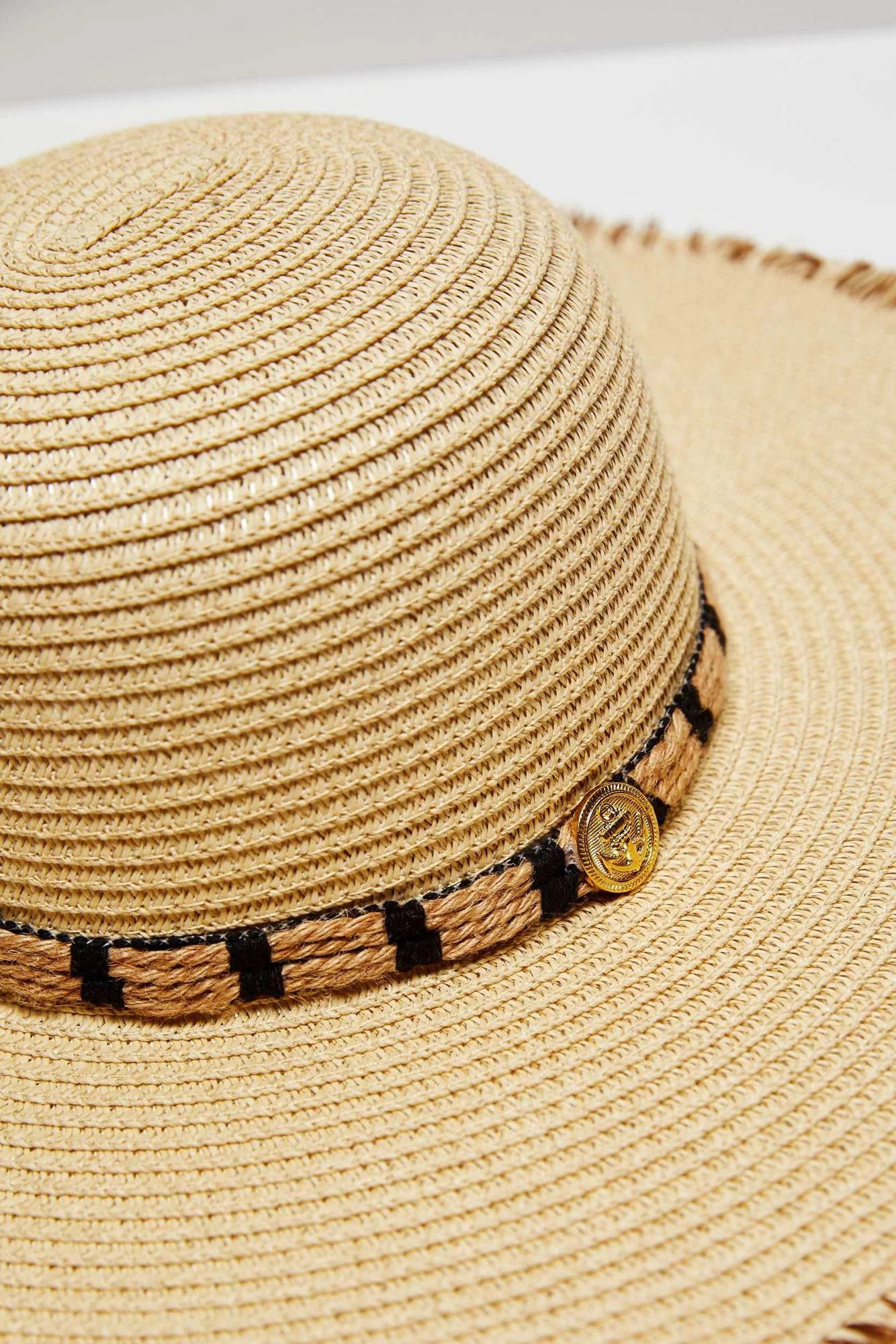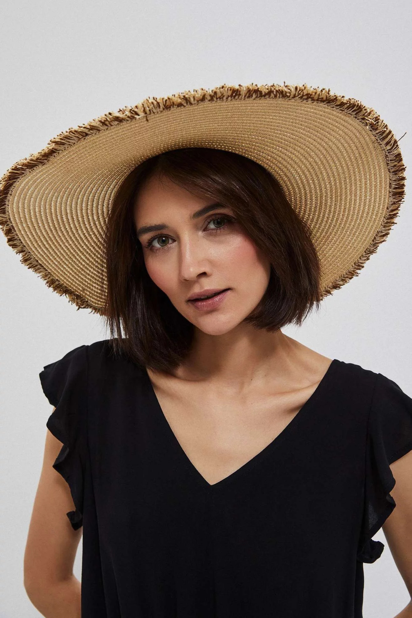Popis produktu90% PAPÍR 10% POLYPROPYLÉN Béžový klobouk se širokým roztřepeným okrajem. Dodatečně zdobené pletenou stuhou kolem okraje. Stylový a praktický, nezbytný během horké dovolené.