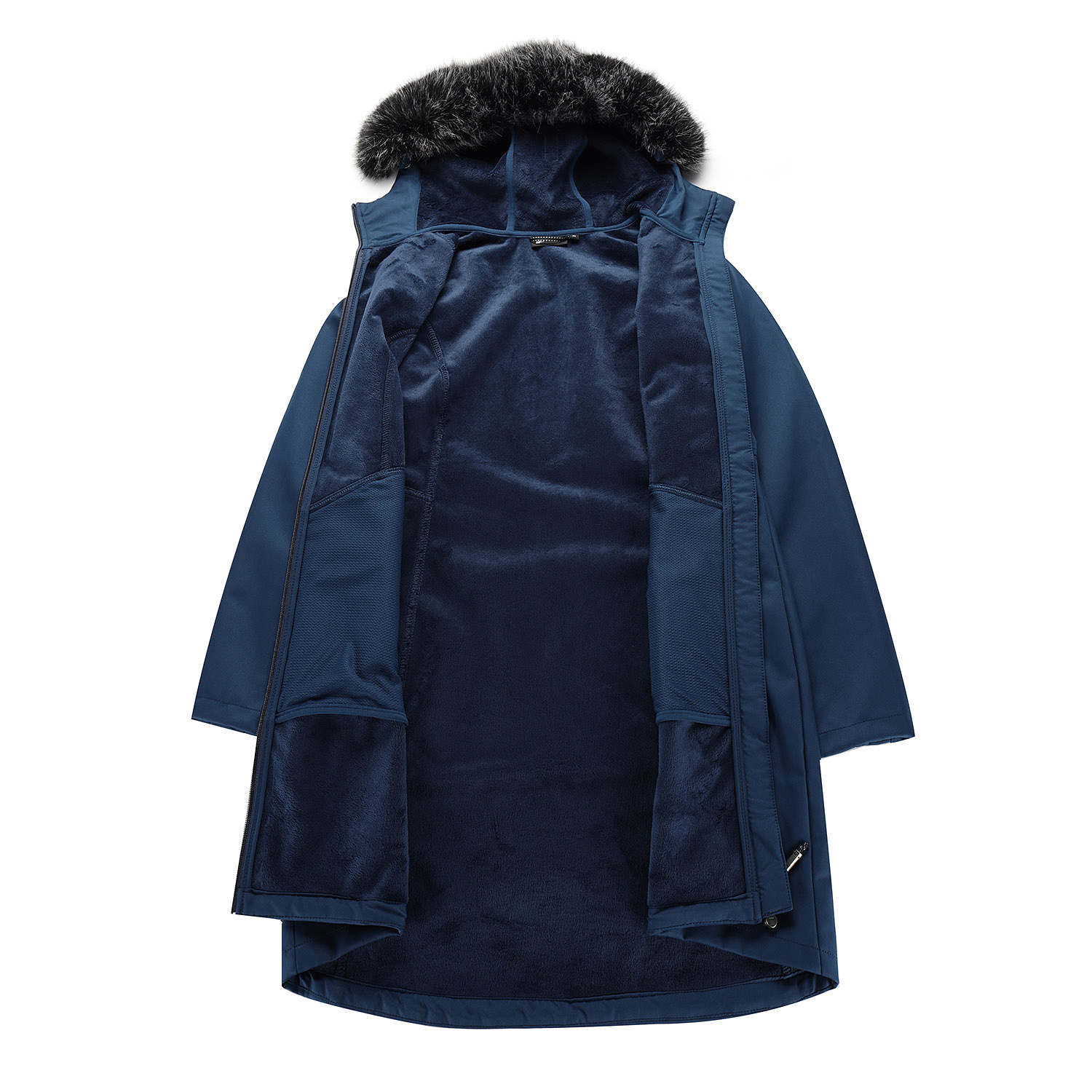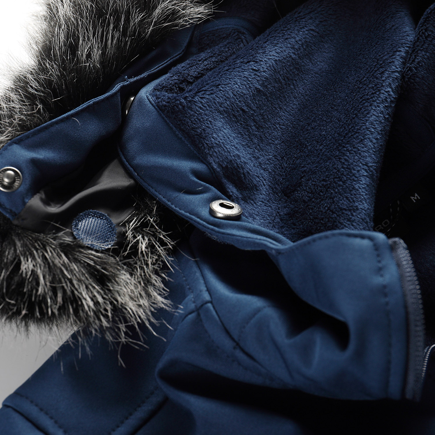 Přiléhavý střih podtrhuje ženskou siluetu, zatímco kapuce se stahováním, hřejivá krytka u brady a odnímatelná umělá kožešina poskytují maximální komfort i v chladném počasí. Praktické detaily jako anatomicky tvarované rukávy, prodloužený zadní díl, dvě kapsy na zip a delší taháčky zajišťují pohodlné nošení každý den. Materiál s vodním sloupcem 8000 mm a paropropustností 3000 g/m2/24h nabízí spolehlivou ochranu před nepřízní počasí bez kompromisů ve stylu.