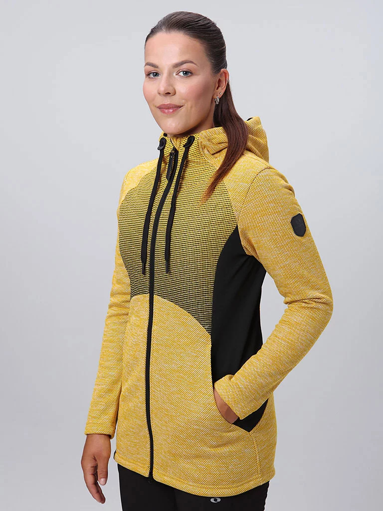 Dámský sportovní svetr Loap GALIMA splní požadavky i těch nejnáročnějších aktivních žen. Základem je oboustranně počesaná pletenina ULTRAWARM, díky níž je svetr skvěle funkční jako druhá vrstva oblečení. Zároveň jej využijete i samostatně, neboť speciální technologie STORMEX a pevná nastavitelná kapuce se postarají o vaši ochranu i za nepříznivého počasí. V teple vás za chladných dnů kromě samotné pleteniny udrží i zateplení z dutých vláken POLYTHERM vpředu na hrudi. Pohyb bez omezení zaručuje jak elasticita materiálů, tak i pružné panely na bocích. Svetr snadno obléknete díky celorozepínání na dvoucestný spirálový zip. Klasický střih s raglánovými rukávy a spodním okrajem bez stahování doplňují dvě praktické kapsy. Funkční hřejivý materiál. Ochrana vůči nepřízni počasí. Zateplení z dutých vláken na hrudi. Pružné boční panely. Raglánové rukávy. Pevná nastavitelná kapuce. 2 vnější kapsy. Ve velikostech XS–XL