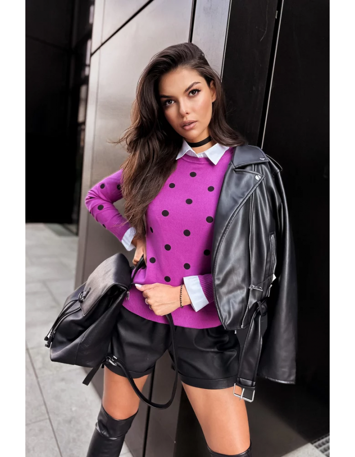 ATHENA - to není jen roztomilý, ale také romantický doplněk pro tvůj šatník, který okamžitě přitahuje pozornost svým výjimečným vzorem v podobě teček. Vyrobený z měkkého a příjemného na dotek materiálu, svetřík zaručuje pohodlí a teplo, zejména v chladnějších dnech. Jeho jemné tečky mu dodávají jemný půvab a dívčí půvab, což z něj činí vynikající volbu pro mnoho příležitostí, jak pro každodenní nošení, tak pro výjimečné události.