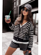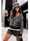 Svetr BREEZY je skvělou volbou na podzim! Má dlouhý rukáv a delší střih, což zaručuje výjimečné pohodlí při nošení. Jeho nadčasové pruhy dodávají stylizaci charakter, a výstřih do V zvýrazňuje krk. Dodatečně, svetr je zapínán na stylové knoflíky, což mu dodává eleganci. To je ideální volba na chladnější podzimní dny.