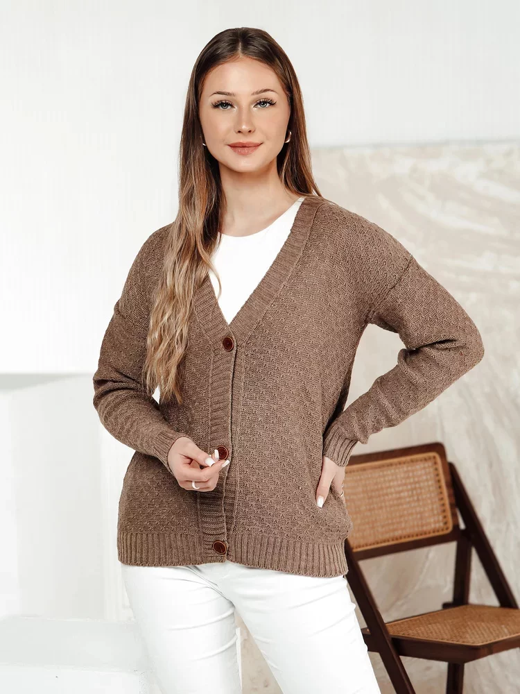 Tento elegantní rozepínací svetr je ideální kombinací pohodlí a stylu. Vyrobený z měkkého úpletu, zajišťuje pohodlí při každodenním nošení. Klasický střih s knoflíky se hodí jak pro neformální, tak i pro formálnější stylizace. Dokonalá volba pro každé roční období.