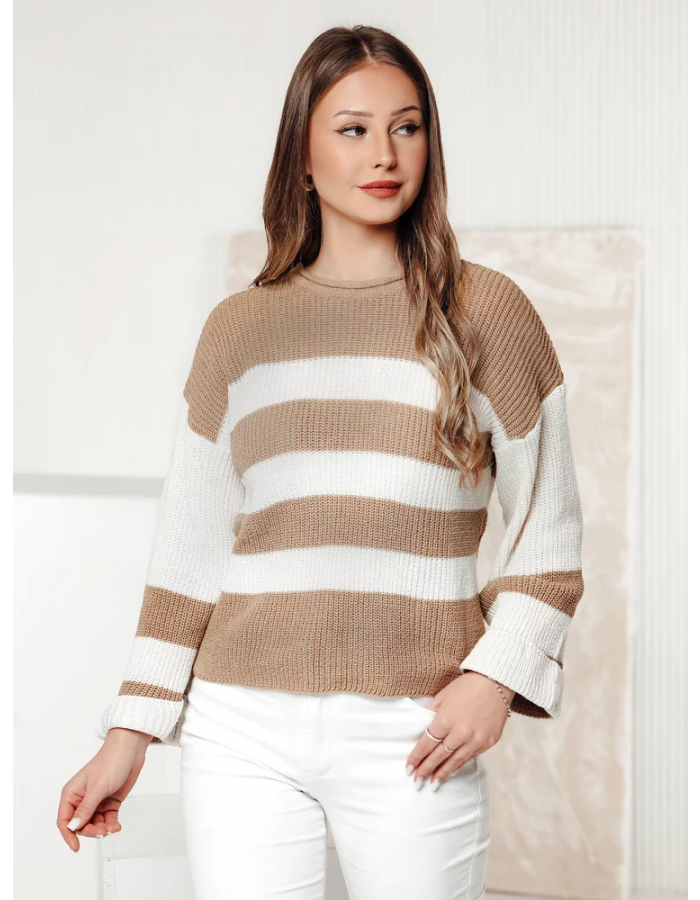 Dámský svetr LINEZZA béžovo-bílý Dstreet MY2382 Univerzální
