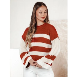 Dámský svetr LINEZZA červeno-bílý Dstreet MY2384 Univerzální
