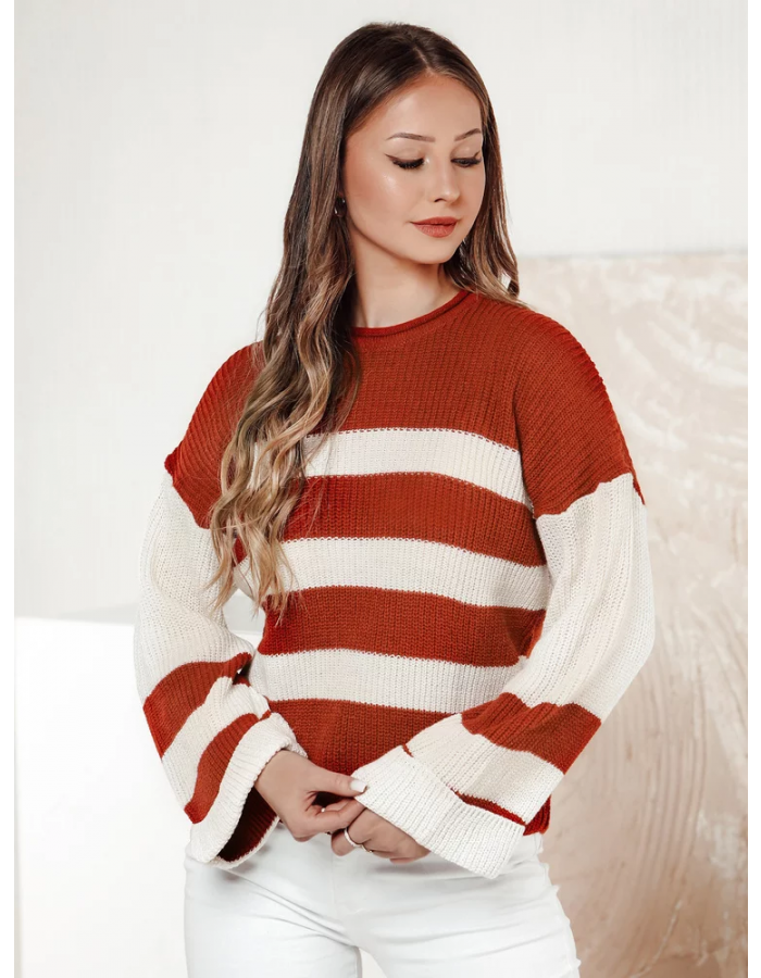Stylový svetr se širokými rukávy, který přitahuje pozornost klasickým pruhovaným vzorem. Měkký a příjemný na dotek materiál zajišťuje pohodlí a volný střih je ideální pro každodenní stylizace. To spojení pohodlí s módním vzhledem, které se hodí pro každou příležitost.