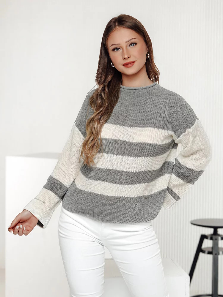 Stylový svetr se širokými rukávy, který přitahuje pozornost klasickým pruhovaným vzorem. Měkký a příjemný na dotek materiál zajišťuje pohodlí a volný střih je ideální pro každodenní stylizace. To spojení pohodlí s módním vzhledem, které se hodí pro každou příležitost.