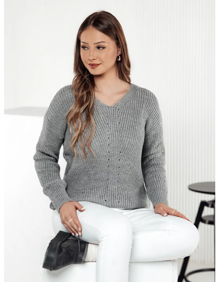 Stylový svetr s jednoduchým střihem, který spojuje klasiku s pohodlím. Měkký materiál a jemný vzor zaručují pohodlí při nošení, zatímco výstřih ve tvaru V mu dodává eleganci. Ideální pro různé stylizace, jak neformální, tak i více formální.