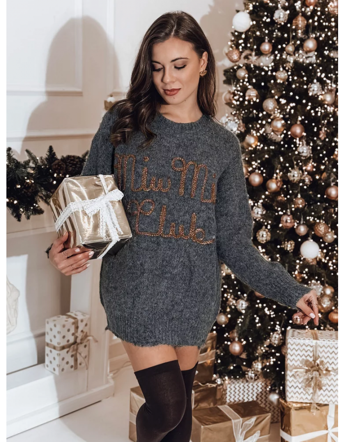 Dámský svetr one size MIU MIU s nápisem grafitový Dstreet MY2348 Univerzální