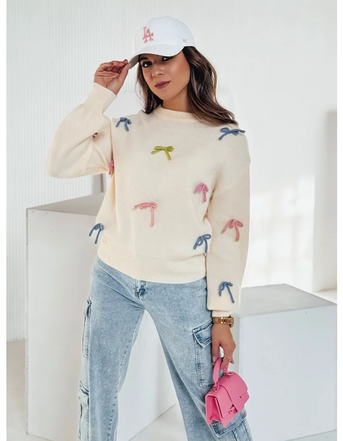 Dámský svetr one size TIELUSH s malými mašličkami béžový Dstreet MY2357 Univerzální