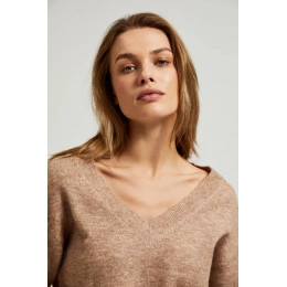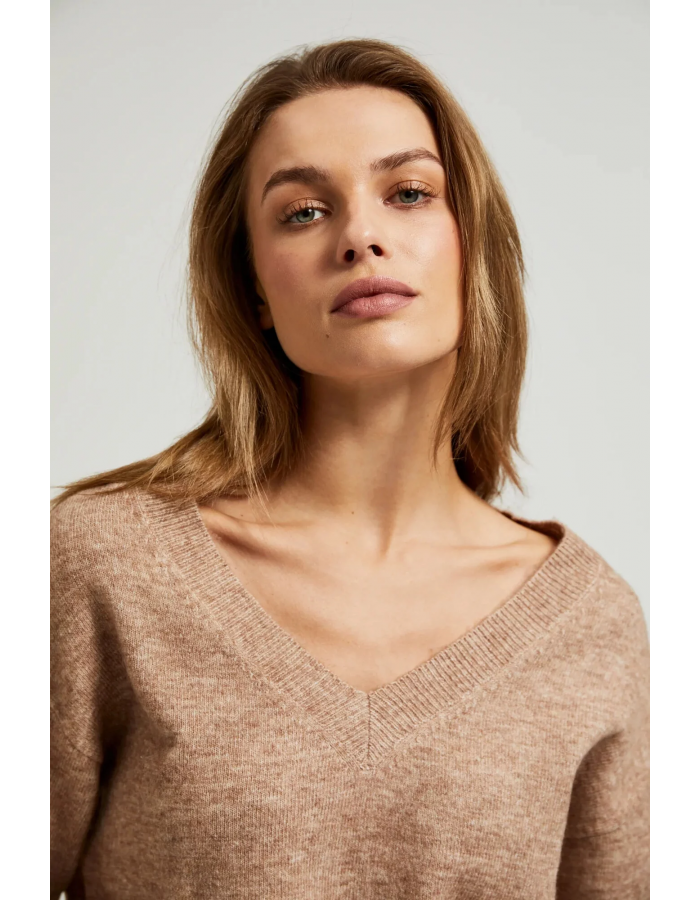 Dámský svetr rovného střihu s výstřihem do V MOODO - béžový Velikost: XXL