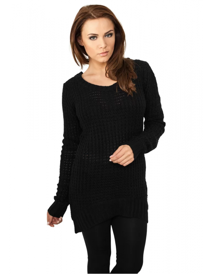 Dámský dlouhý svetr s širokým výstřihem černý M