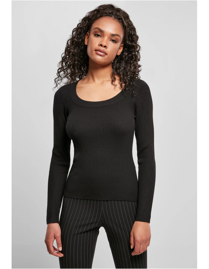 Dámský dámský pletený svetr s velkým kulatým výstřihem a úzkým střihem. Jednoduché a elegantní nabízí pohodlnou délku po boky a dlouhé rukávy. Útulný svetr je vyroben z polyakrylu, viskózy a nylonu.