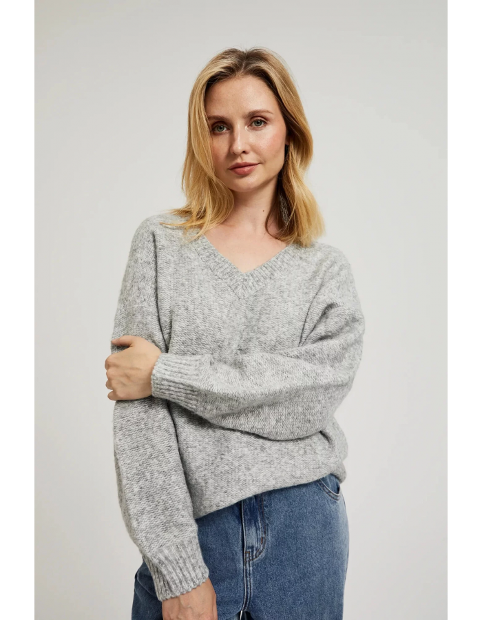 63%AKRYL, 31%POLYESTER, 6%VLNA Šedý dámský svetr je ideální volbou pro chladné dny. Vyrobený z akrylu, poskytuje teplo a pohodlí při nošení. Delší střih, dlouhé rukávy a výstřih do V dodávají jemnou ženskost. Tento svetr bude skvělou volbou pro mnoho příležitostí, jak na běžné nošení, tak i na formálnější setkání. Lze jej nosit jak s džíny a teniskami, tak s elegantní sukní a lodičkami. Díky univerzální šedé barvě se snadno přizpůsobí různým stylizacím.