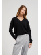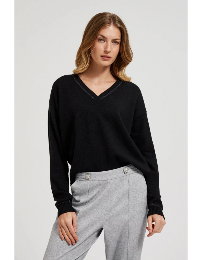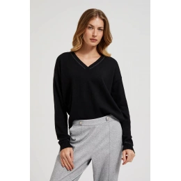 Dámský svetr s výstřihem do V MOODO - černý Velikost: XS