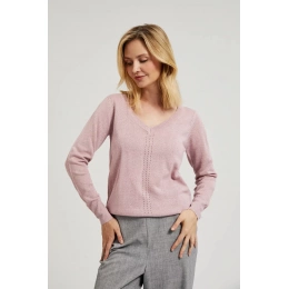 Dámský svetr s výstřihem do V MOODO - růžový Velikost: XXL
