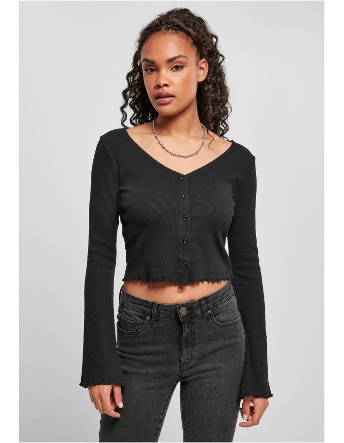 Tento sexy a ženský kardigan pro ženy se prezentuje rafinovanými detaily. Střih je krátký a zkrácený a nabízí ladící výstřih do V a barevně sladěnou knoflíkovou légu. Dlouhé rukávy dámského kardiganu jsou mírně rozšířené. Všechny lemy jsou hravě rolované. Letní módní high flyer má úzký střih a je vyroben z pohodlného strečového žebrování.