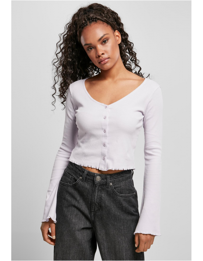 Tento sexy a ženský kardigan pro ženy se prezentuje rafinovanými detaily. Střih je krátký a zkrácený a nabízí ladící výstřih do V a barevně sladěnou knoflíkovou légu. Dlouhé rukávy dámského kardiganu jsou mírně rozšířené. Všechny lemy jsou hravě rolované. Letní módní high flyer má úzký střih a je vyroben z pohodlného strečového žebrování.