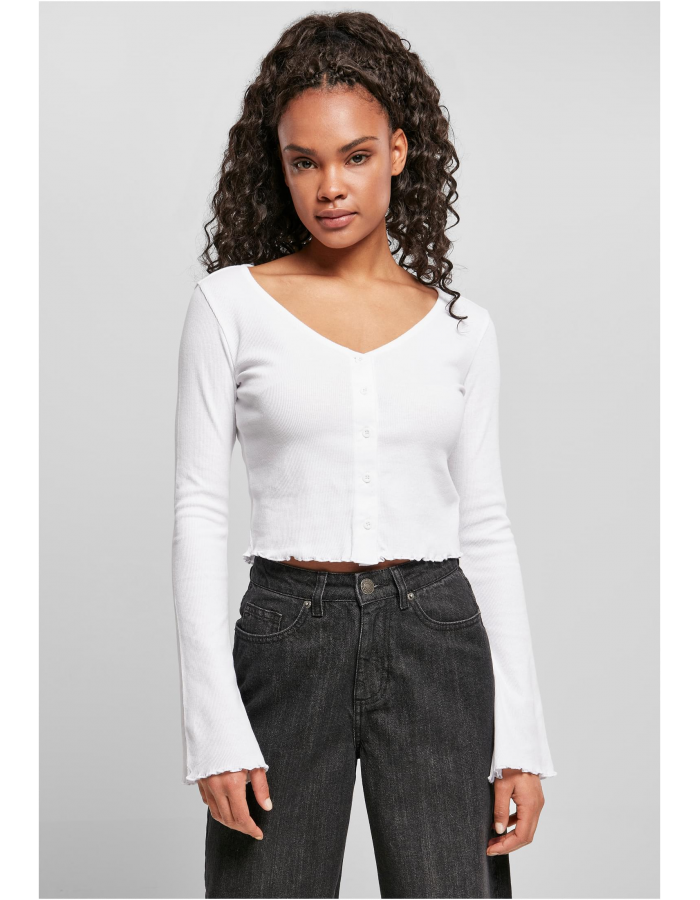 Tento sexy a ženský kardigan pro ženy se prezentuje rafinovanými detaily. Střih je krátký a zkrácený a nabízí ladící výstřih do V a barevně sladěnou knoflíkovou légu. Dlouhé rukávy dámského kardiganu jsou mírně rozšířené. Všechny lemy jsou hravě rolované. Letní módní high flyer má úzký střih a je vyroben z pohodlného strečového žebrování.