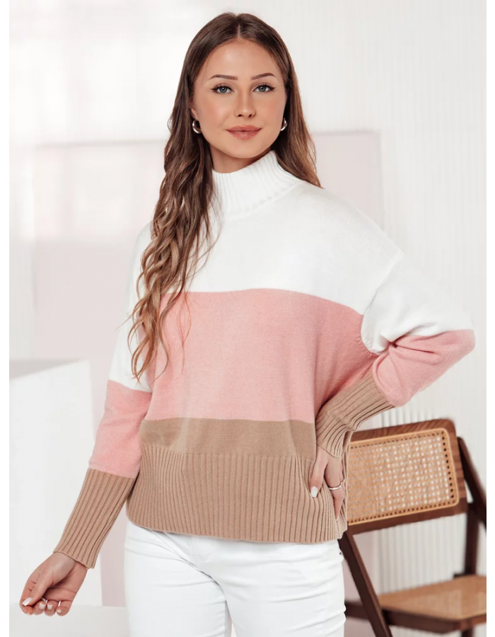 Stylový svetr s rolákem, který dokonale spojuje pohodlí s elegancí. Měkký materiál obklopuje tělo, zajišťuje teplo a pohodlí po celý den. Klasický střih obohacený o módní detaily činí svetr vhodným pro mnoho stylizací, jak pro každodenní nošení, tak pro výjimečné příležitosti.