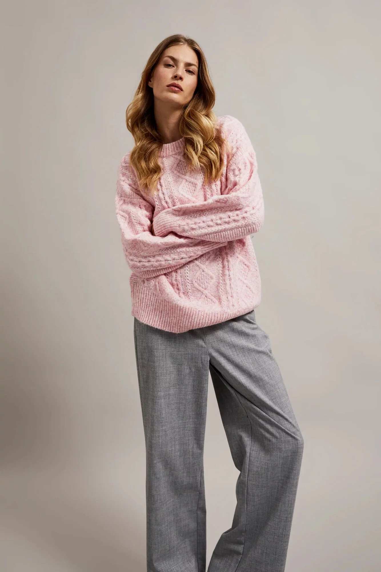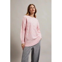 63%AKRYL, 31%POLYESTER, 6%VLNA Svetr v růžové barvě s efektním copánkovým vzorem je ideální volbou pro každou ženu, která si cení pohodlí a stylu. Vyrobený z akrylu, je na dotek měkký a příjemný pro pokožku. Delší střih a rukávy poskytují dodatečné teplo v chladnějších dnech. Kulatý výstřih dodává půvabu a zajišťuje, že svetr se skvěle hodí k různým stylizacím. Tento svetr bude skvělou volbou pro mnoho příležitostí, jak na běžné nošení, tak i na formálnější události. Dokonale se hodí jak k džínům, sukním, tak i k elegantním kalhotám.