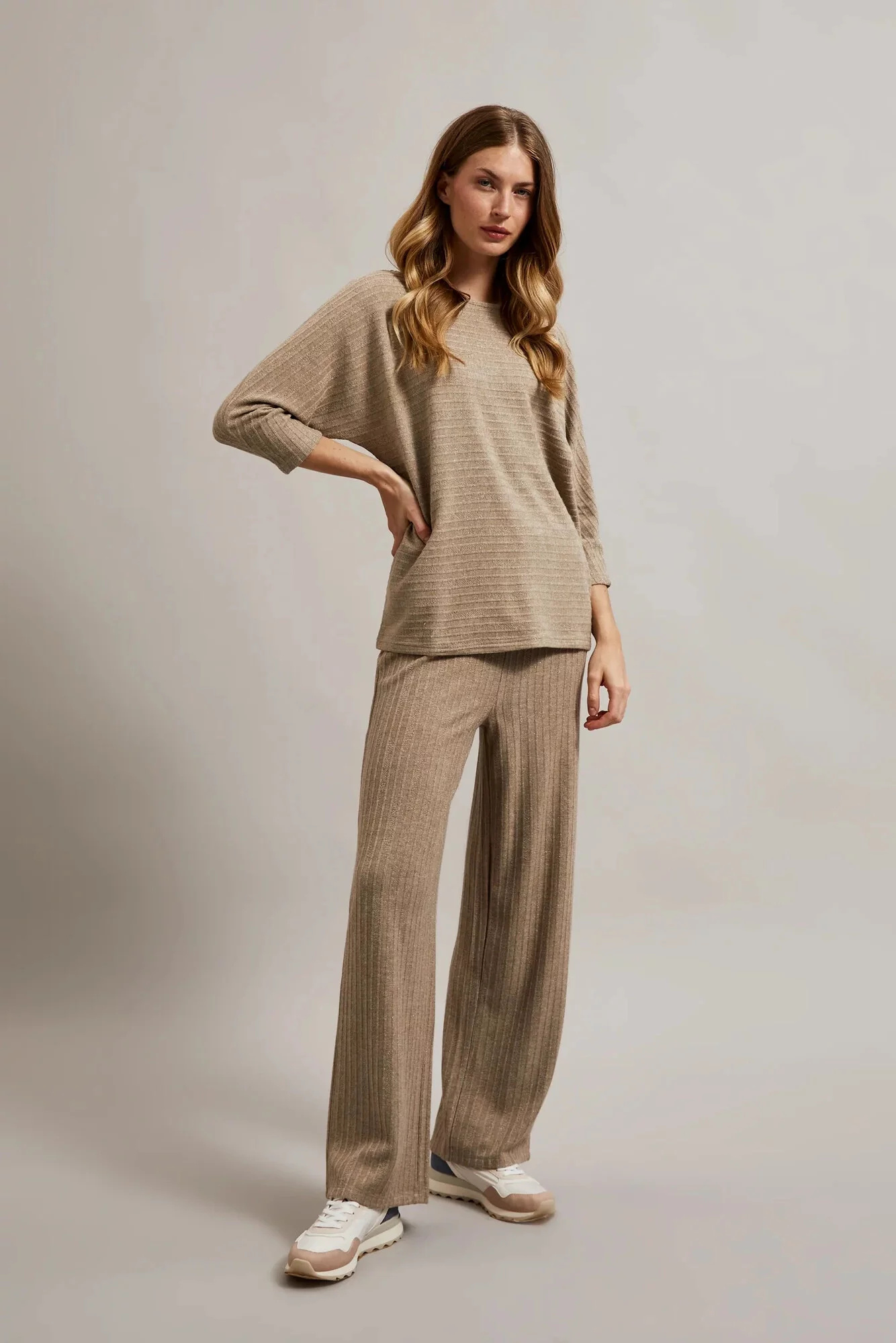 55%VISKÓZA, 19%POLYAMID, 15%POLYESTER, 7%METALIZOVANÁ NIT, 4%ELASTAN Béžový dámský svetr je ideální volbou pro každou ženu, která hledá elegantní a univerzální prvek šatníku.