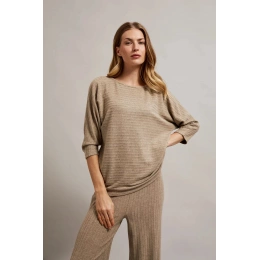 Vyrobený z vysoce kvalitní viskózy, hladký bez vzoru, zajišťující pohodlí při nošení. Netopýří střih zajišťuje, že se přizpůsobí každé postavě, a rukávy 7/8 mu dodávají moderní vzhled. Výstřih ve tvaru lodičky zdůrazňuje krk a dodává ženskost. Tento svetr se skvěle hodí pro různé příležitosti, jak pro každodenní nošení, tak i pro formálnější události. Lze jej kombinovat jak s elegantními kalhotami, tak s džíny, čímž vytvoříte různé stylizace. Ideálně se hodí k kotníkovým botám na podpatku, stejně jako k teniskám, dodávajíc každému outfitu výjimečný charakter.
