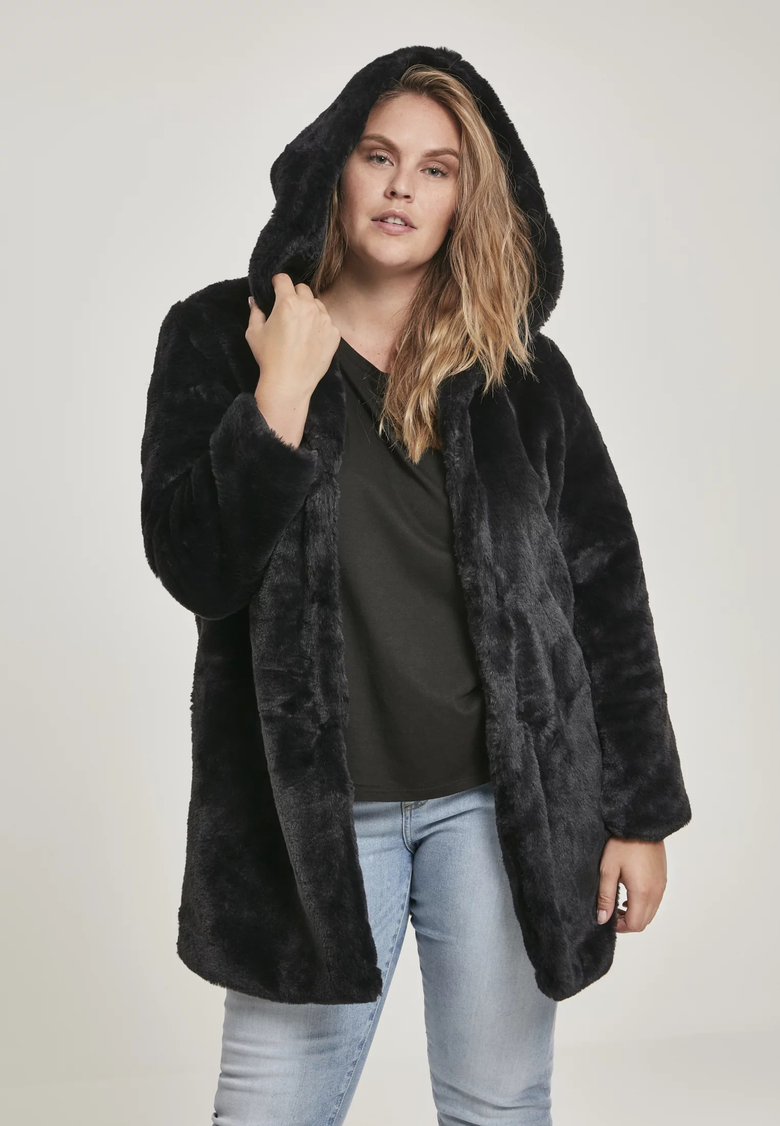 Plyšový kabát s kapucí, který potěší extra faktorem mazlení, který vám přináší měkká umělá králičí kožešina a taftová podšívka na vnitřní straně. Stylovým vrcholem je XXL kapuce. Šikovné a pohodlné jsou dvě teplé boční kapsy. Pomocí zabudovaných oček uzavřete kabát pohybem zápěstí.