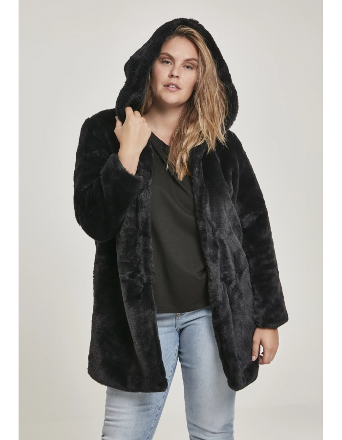 Dámský Teddy Coat s kapucí černý Grösse: L