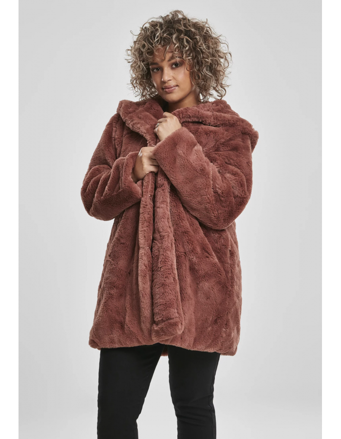 Plyšový kabát s kapucí, který potěší extra faktorem mazlení, který vám přináší měkká umělá králičí kožešina a taftová podšívka na vnitřní straně. Stylovým vrcholem je XXL kapuce. Šikovné a pohodlné jsou dvě teplé boční kapsy. Pomocí zabudovaných oček uzavřete kabát pohybem zápěstí.