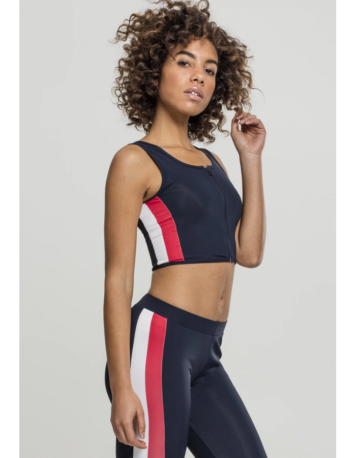 Dámský top s bočním pruhem na zip v tmavě modré/ohnivé červené/bílé barvě