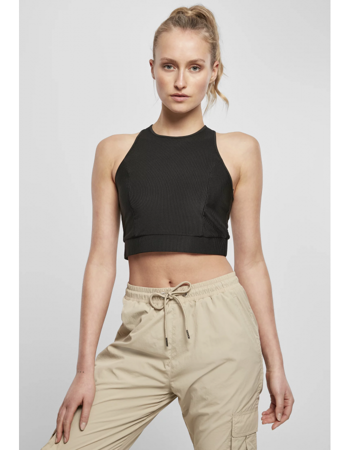 Tento sportovní dámský top vyrobený z třpytivého elastického žebrovaného strečového žerzeje navíc uspokojí jednoduchým a efektním střihem. Je oříznutá a využívá dynamická závodní záda, aby poskytovala maximální svobodu pohybu. Elastický pásek v dolní linii optimalizuje pohodlí při nošení. Přirozeně má úzký střih a dobře sedí.