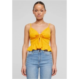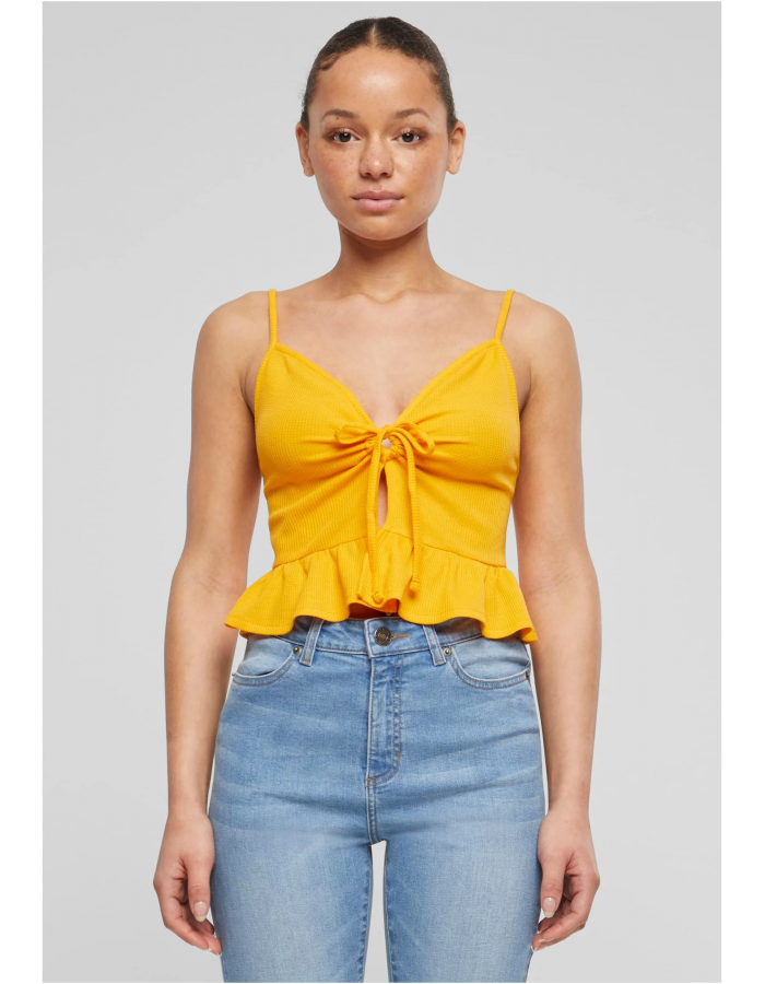 Pro dotek ženské elegance a letní lehkosti: vaflový pique volánkový top pro ženy zaujme svým hravým designem. Vyrobeno z příjemné směsi bavlny a polyesteru, je nejen pohodlné na nošení, ale také skvěle vypadá díky vaflové piké látce. Kombinace jemných špagetových ramínek, okouzlujícího volánu na lemu a sofistikovaného uzlu na poprsí dodává tomuto topu jedinečný nádech. Ať už se nosí jako vzdušná bandeau pod lehkou bundu nebo samostatně v teplých dnech, tento top je všestranným kouskem do každého šatníku.