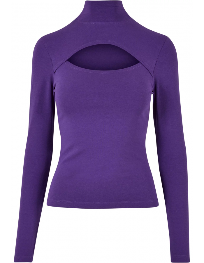 Tento dámský fialový top má dlouhé rukávy a unikátní výřez v oblasti hrudníku, který dodává elegantní a moderní vzhled. Je navržen s úzkým, přiléhavým střihem a vysokým stojáčkem u krku. Tento design je ideální pro ženy, které chtějí do svého outfitu přidat zajímavý prvek, aniž by obětovaly pohodlí nebo styl. Top je vyroben z pružného materiálu, což zajišťuje pohodlné nošení a přizpůsobení postavě. Může být skvělým doplňkem pro vrstvení pod bundu nebo sako, ale také jako samostatný kousek.