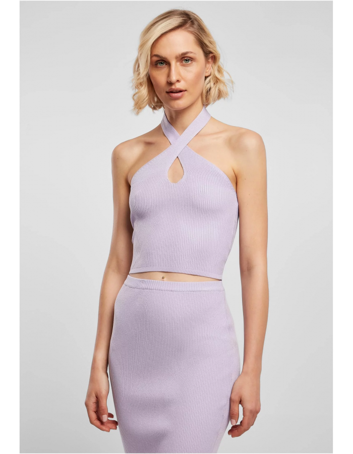 Tento sofistikovaný dámský úpletový top pro ženy nabízí ohňostroj detailů a je skutečnou módní lahůdkou. Ramínka se kříží přes dekolt a v zátylku se spojují. Tvoří hluboký kapkovitý výstřih a nechávají záda zcela volná. Sexy top má zkrácenou délku a samozřejmě slim střih. Použitý elastický úplet z jemné žebrované tkaniny (polyakryl, viskóza a nylon) zajišťuje poddajný komfort nošení.