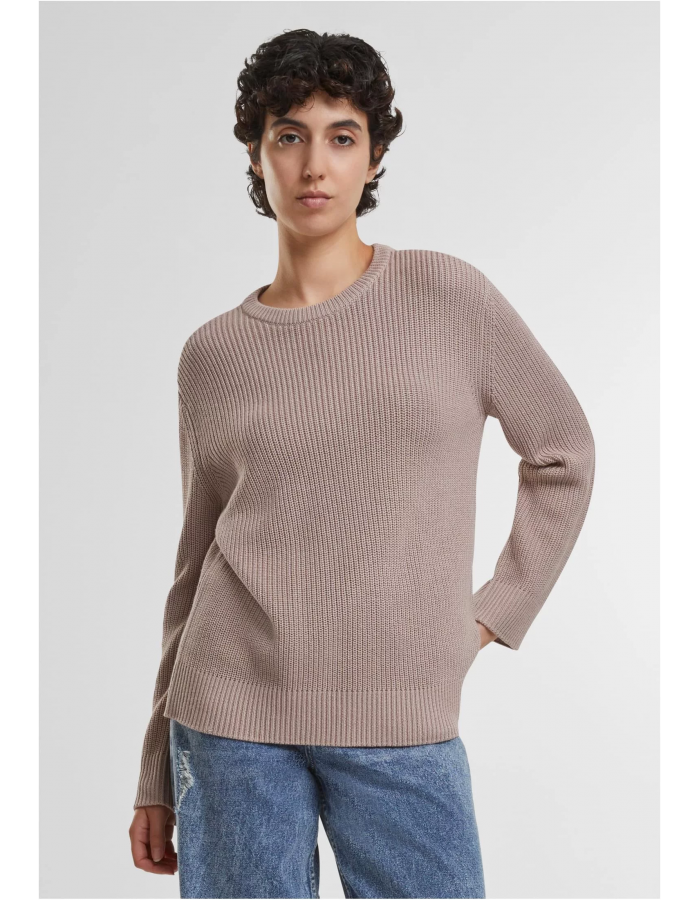 Svetr s dlouhým rukávem má volnější střih a je vyroben z hrubšího žebrovaného úpletu, který zajišťuje teplo a pohodlí. Má klasický kulatý výstřih a spadlá ramena, což mu dodává ležérní a moderní vzhled. Spodní lem a manžety jsou také zakončeny žebrovaným vzorem, což podtrhuje celkový minimalistický styl. Svetr je ideální volbou pro chladnější dny a snadno se kombinuje s různými typy oblečení, jako jsou džíny nebo sukně.