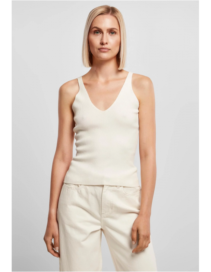 Tento elegantní dámský top vyzařuje sportovní eleganci. Díky rafinovanému pletenému materiálu z viskózy, polyesteru a nylonu je dosaženo ženského úzkého střihu. Její styl definují dva hluboké výstřihy do V na přední a zadní straně. Útulný úpletový top padá až do pasu a působí příjemně sebevědomě.