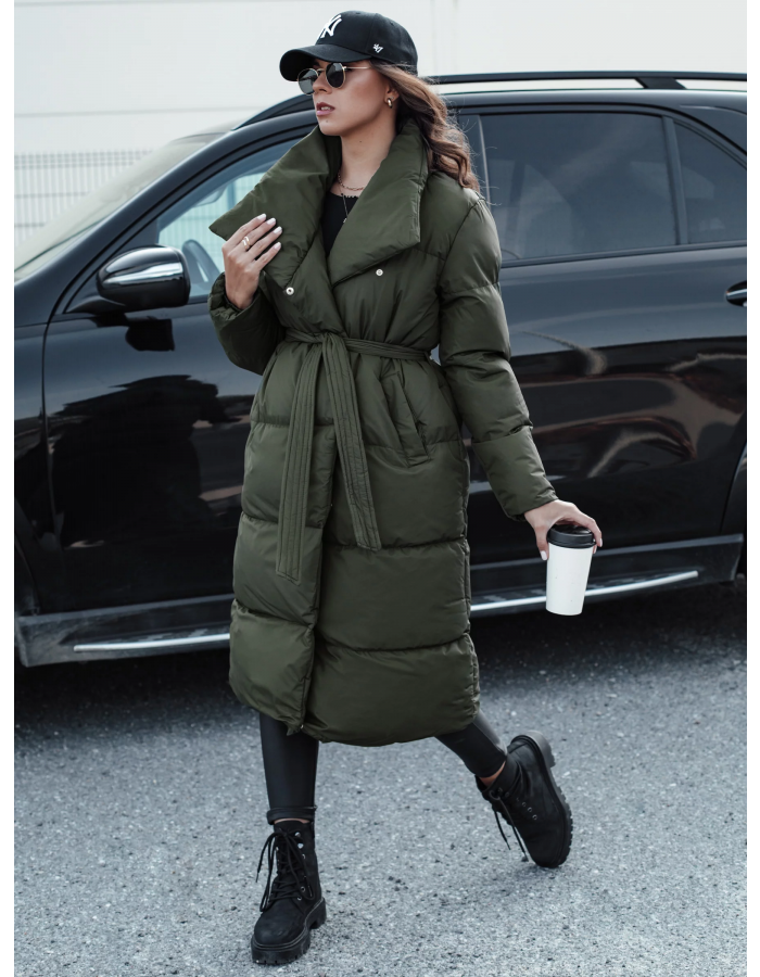 Dámský zimní dlouhý prošívaný kabát FAVI zelený Dstreet TY4576 Velikost: S