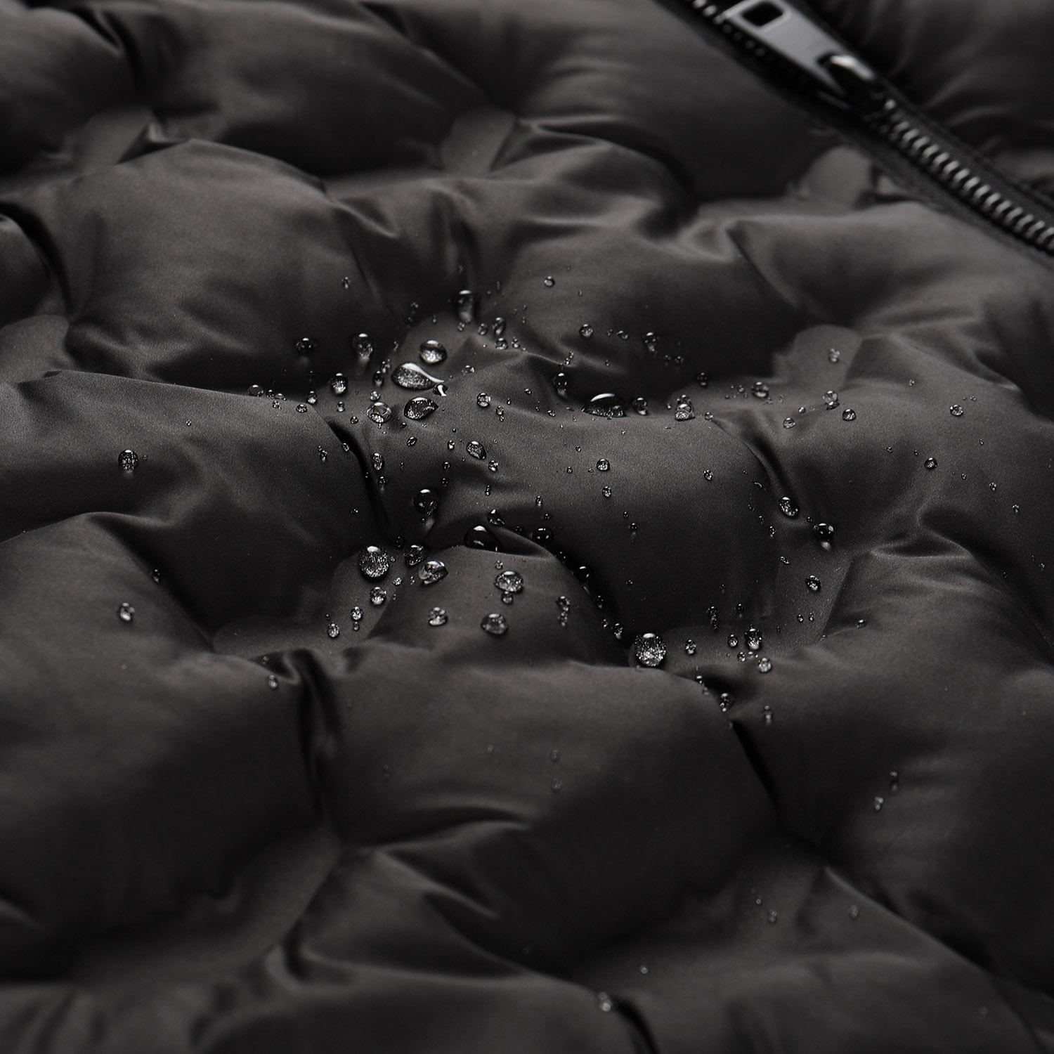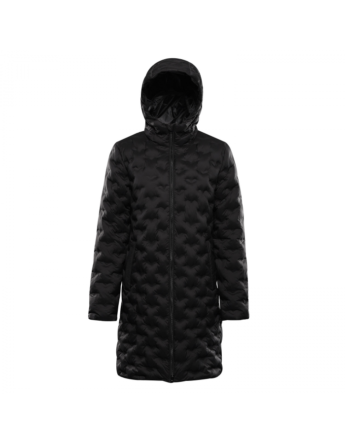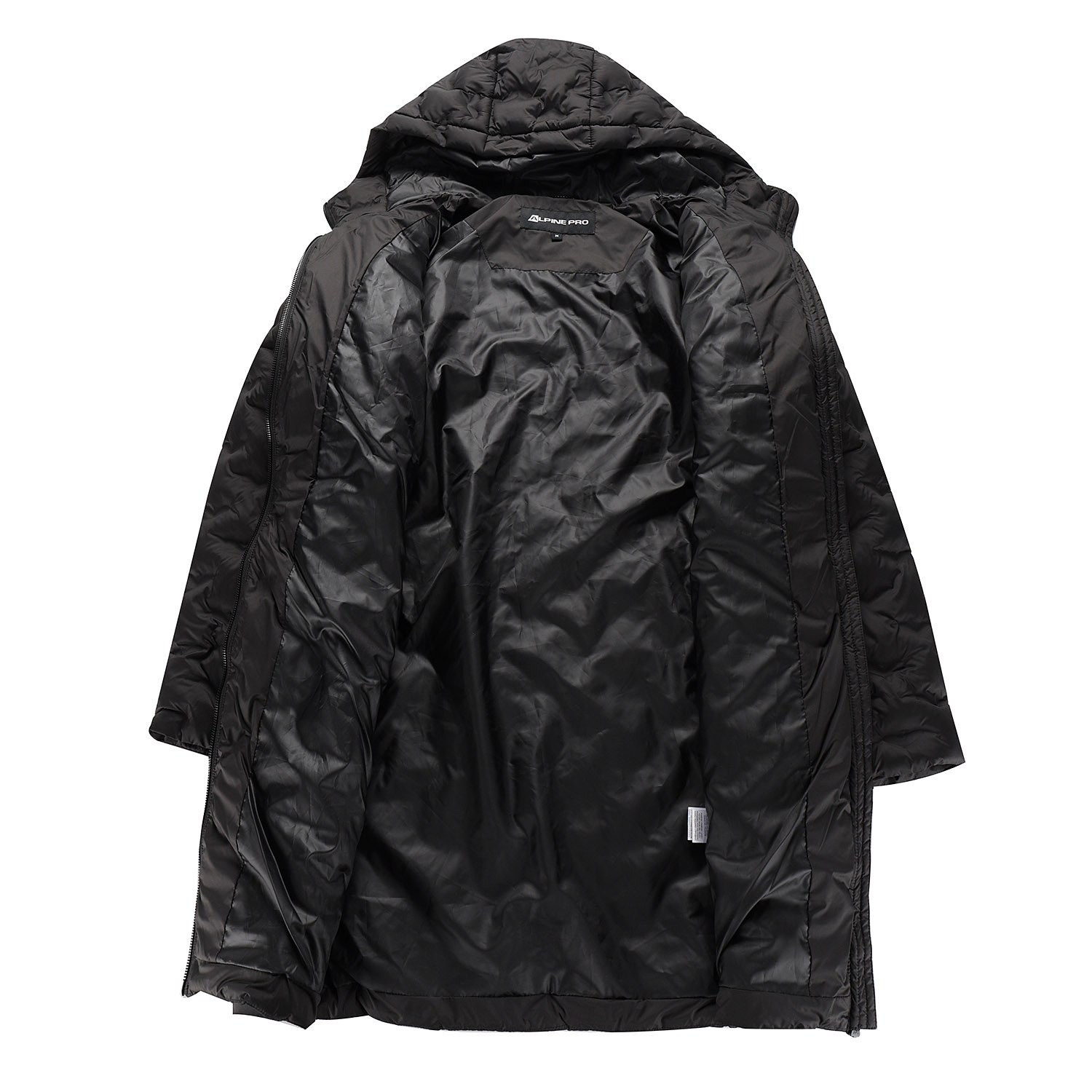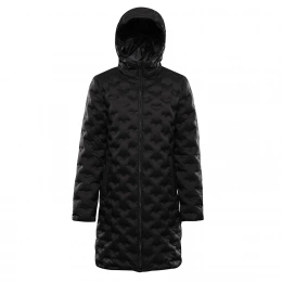 Kabát je dlouhý, prošívaný a embosovaný, vyroben z vodoodpudivého a ultralehkého materiálu se zátěrovou úpravou, která chrání proti vlhkosti a zajišťuje pohodlí při nošení ve městě i v přírodě. Střední hřejivá výplň udržuje příjemné teplo, zatímco volný HI-THERM střih poskytuje dostatek prostoru pro vrstvení oblečení a neomezuje pohyb. Neodepínatelná kapuce chrání před větrem a sněhem, dvě praktické kapsy nabízejí prostor pro osobní věci a nášivka na rukávu dodává kabátu stylový a moderní vzhled.