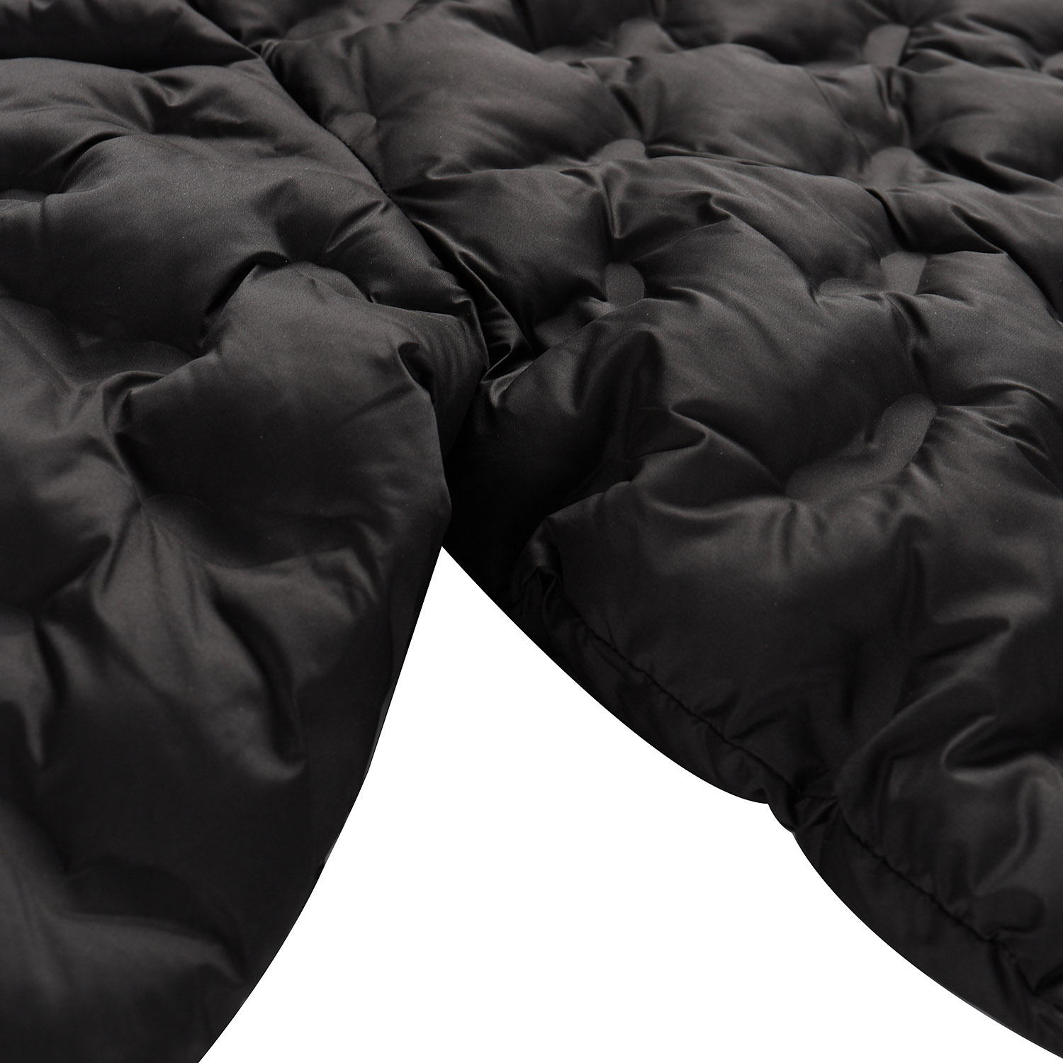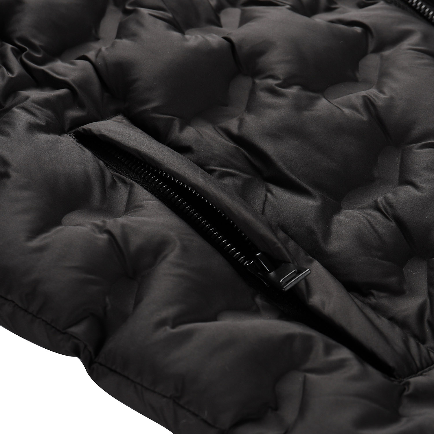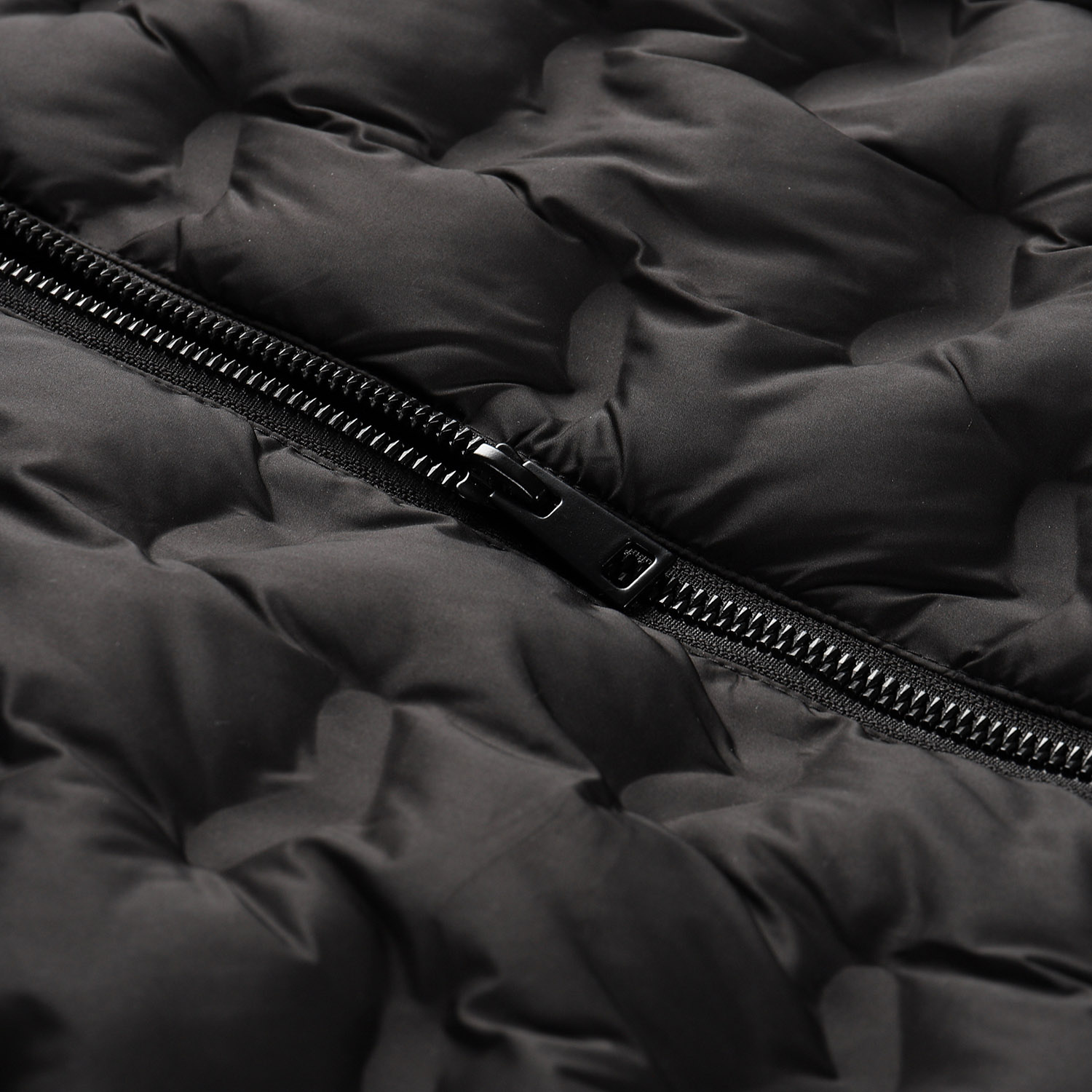 Kabát je dlouhý, prošívaný a embosovaný, vyroben z vodoodpudivého a ultralehkého materiálu se zátěrovou úpravou, která chrání proti vlhkosti a zajišťuje pohodlí při nošení ve městě i v přírodě. Střední hřejivá výplň udržuje příjemné teplo, zatímco volný HI-THERM střih poskytuje dostatek prostoru pro vrstvení oblečení a neomezuje pohyb. Neodepínatelná kapuce chrání před větrem a sněhem, dvě praktické kapsy nabízejí prostor pro osobní věci a nášivka na rukávu dodává kabátu stylový a moderní vzhled.
