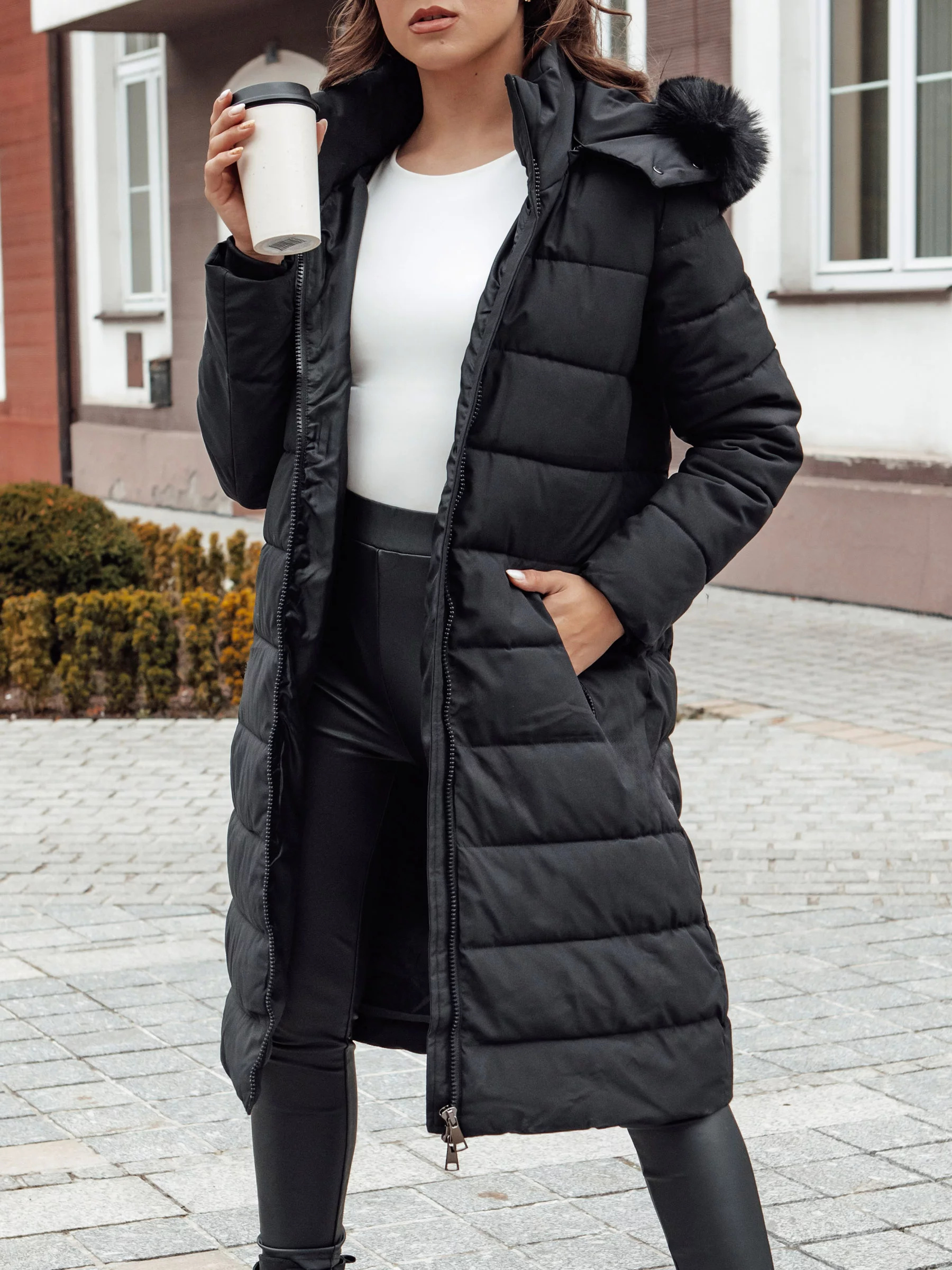 Dlouhá, prošívaná bunda s kožešinovou kapucí, ideální na chladné dny. Její lehká, ale teplá konstrukce zajišťuje pohodlí a ochranu před chladem. Elegantní design s kožešinovým lemováním jí dodává luxusní charakter, a praktické kapsy a regulace v pase z ní činí skvělou volbu pro každodenní procházky po městě nebo víkendové výlety. Tato bunda se dokonale hodí k neformálním stylům, dodává jim šmrnc a eleganci. Vyberte ji, abyste spojili styl s funkčností a vždy vypadali módně.