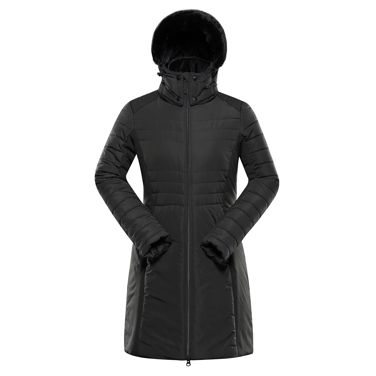 Funkční detaily zahrnují odepínatelnou kapuci se stahováním, kterou doplňuje odnímatelná kožešina pro variabilní styl. Dvousměrný hlavní zip usnadňuje pohyb i větrání při chůzi. Tři praktické kapsy – dvě vnější na zip a jedna vnitřní také se zipem – nabízejí dostatek prostoru pro osobní věci. Reflexní potisk na zádech zvyšuje bezpečnost za snížené viditelnosti.