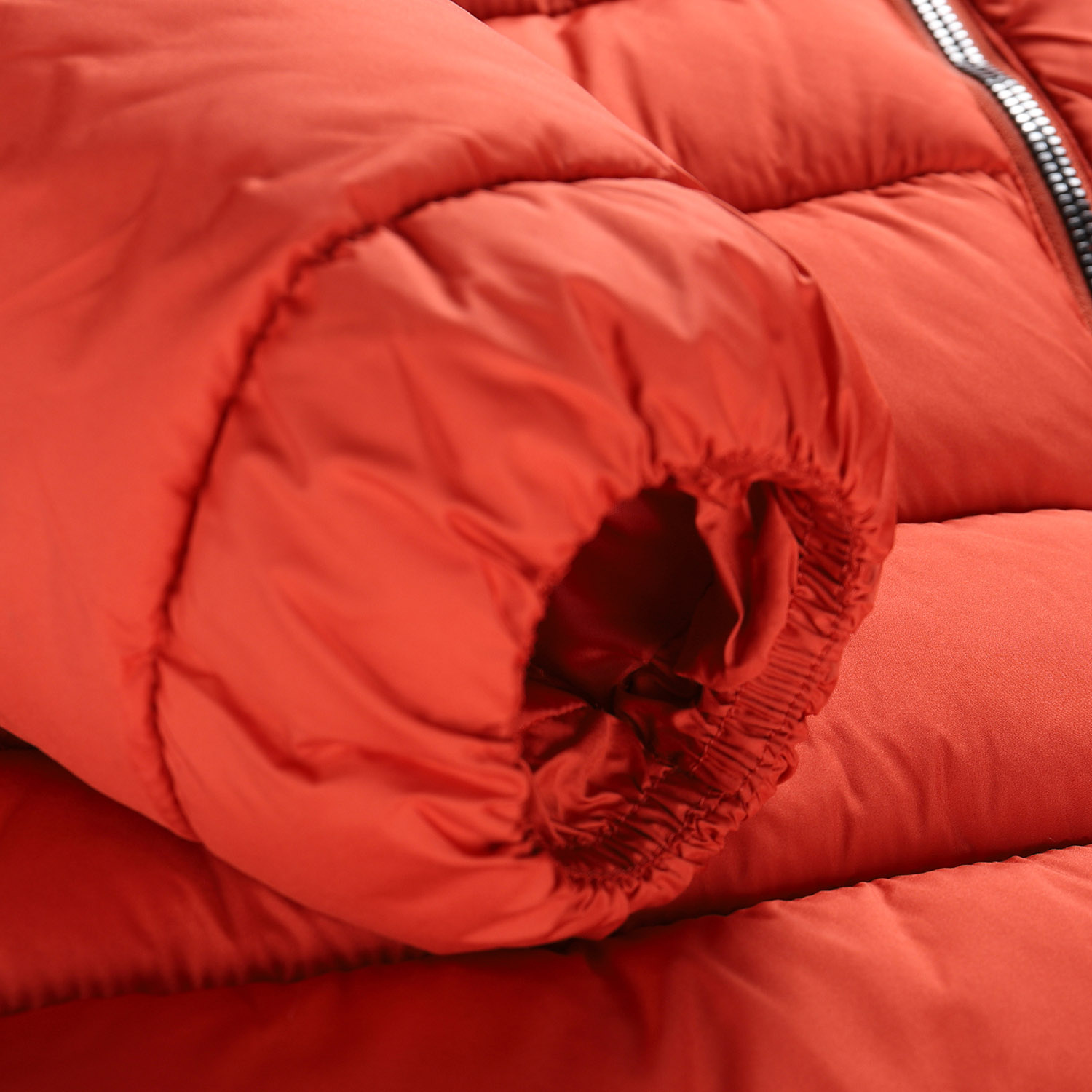Objemný PUFFY styl s dekorativním prošíváním působí elegantně a nadčasově, polopřiléhavý střih zvýrazňuje ženskou postavu a neodepínatelná kapuce poskytuje ochranu před větrem a zimou. Kabát má dvě praktické kapsy, které poslouží na drobnosti i zahřátí rukou, a ozdobnou nášivku na rukávu, která dodává moderní vzhled.
